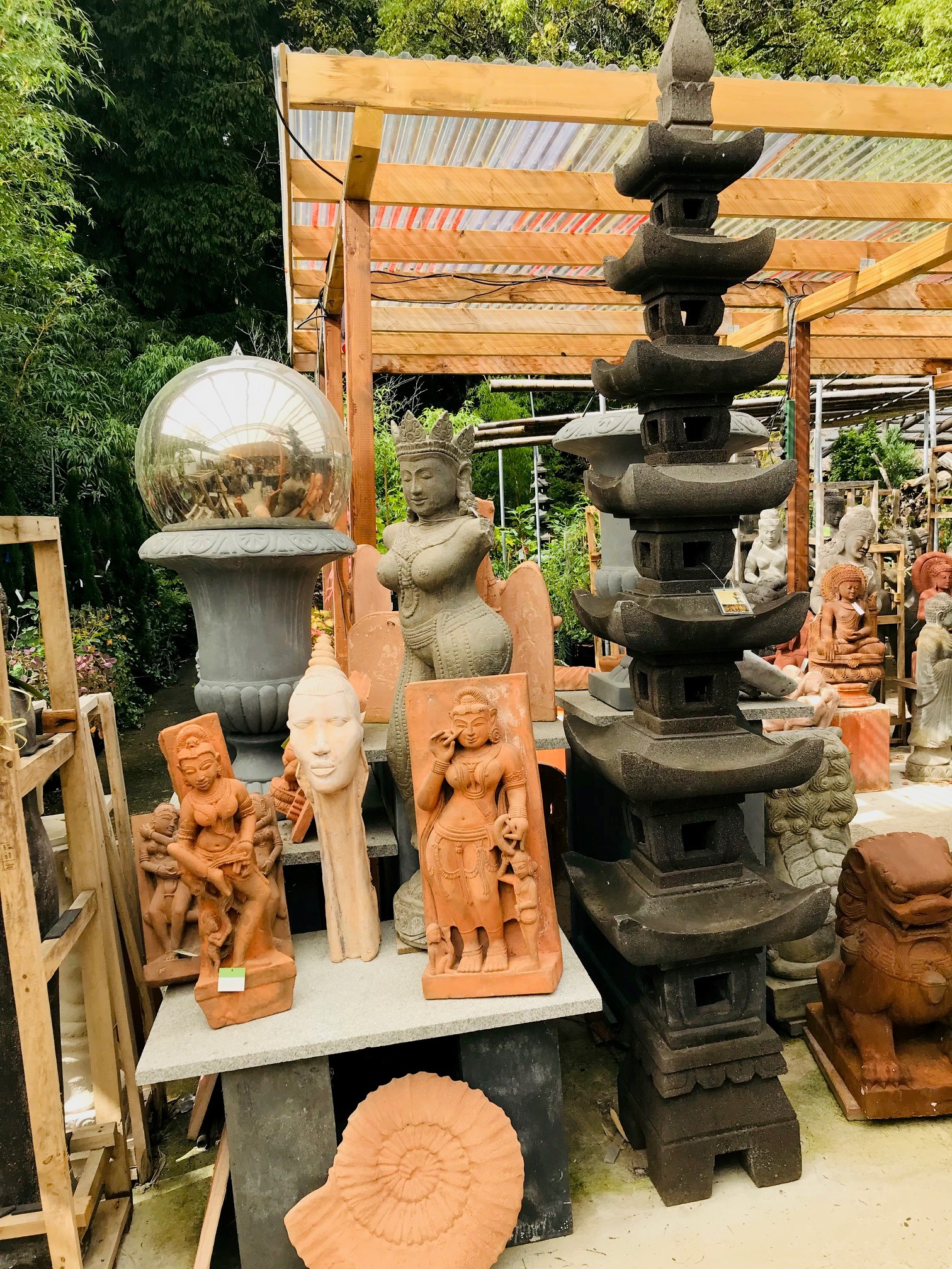 Diese wunderschöne Steinlaterne ist an das Design einer japanischen Pagode angelehnt. Pagoden sind Bauwerke, welche zu Ehren Buddhas gebaut wurden. Ihre Bauweise war so außergewöhnlich dass sie sogar starken Erdbeben stand hielten. Denn alle Balkem und Streben wurden in einem besonderen Stecksystem miteinander verbunden, außerdem gab es auch freischwebende Pfeiler, welche bei Erderusionen in Schwingung versetzt wurden und so das Beben ausgleichen konnten. Ihr fächerartiger Aufbau erinnert an die natürliche Form von Blatt oder Pflanzenstrukturen.