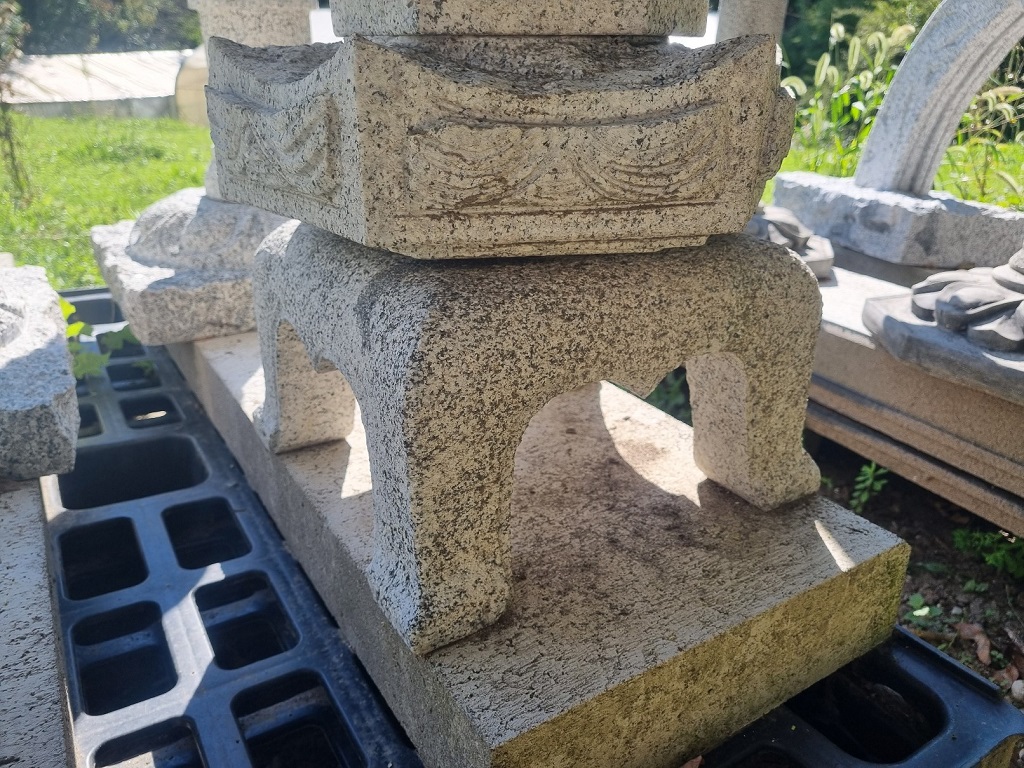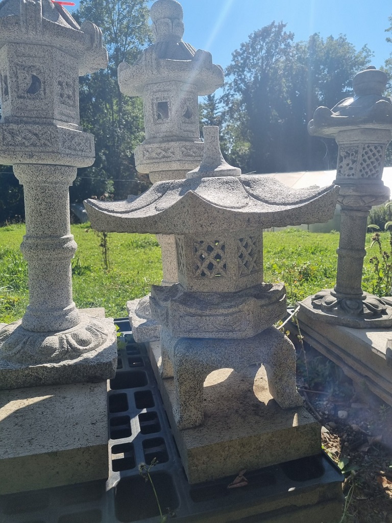 Diese Pagode ist von Hand aus Granit geschlagen. Da es sich bei jeder um ein Unikat handelt sind leichte Abweichungen von Struktur und Farbe der abgebildeten Pagode möglich. Auch Steineinschlüsse und Unregelmäßigkeiten in den Kanten und Rundungen sind bei handgeschlagenen Figuren und Pagoden leider immer möglich.