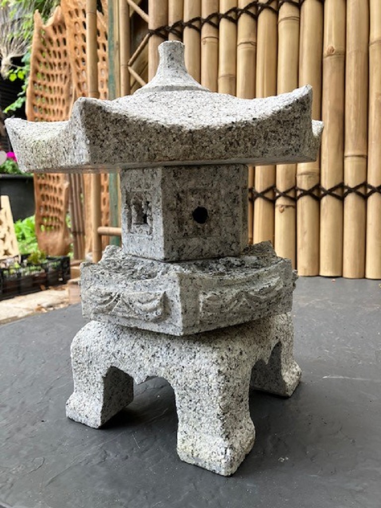 Die Japanische Steinlaternen sorgen für ein harmonisches Ambiente in Ihrem Garten. Die Yukimi-Gata oder Schneebetrachtungslaterne hat ihren Namen wegen des grossen, ausladenden Daches, auf dem im Winter ein grosse Schneehaube Platz findet.