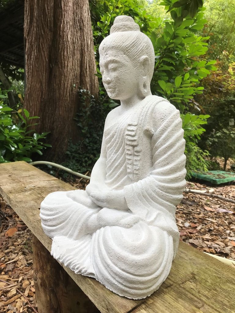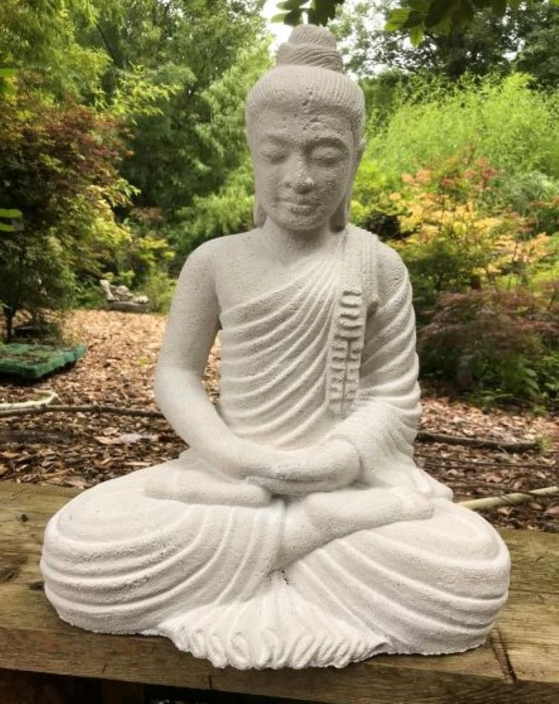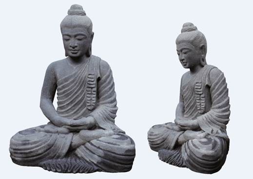 Buddha sitzt hier in typischer Meditationspose, er ist im Ruhezustand und die materielle Welt ist ihm gleichgültig. Bei dieser Meditations-Haltung liegen beide Hände locker aufeinander im Schoß. Die Handflächen zeigen nach oben, dies symbolisiert den Zustand tiefer Meditation.