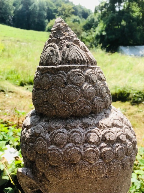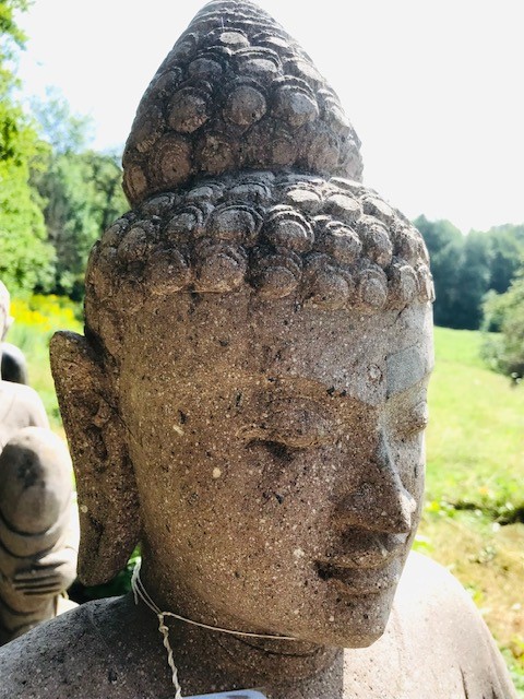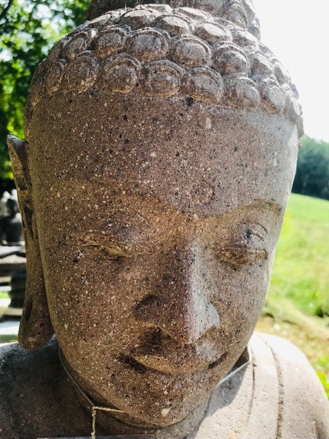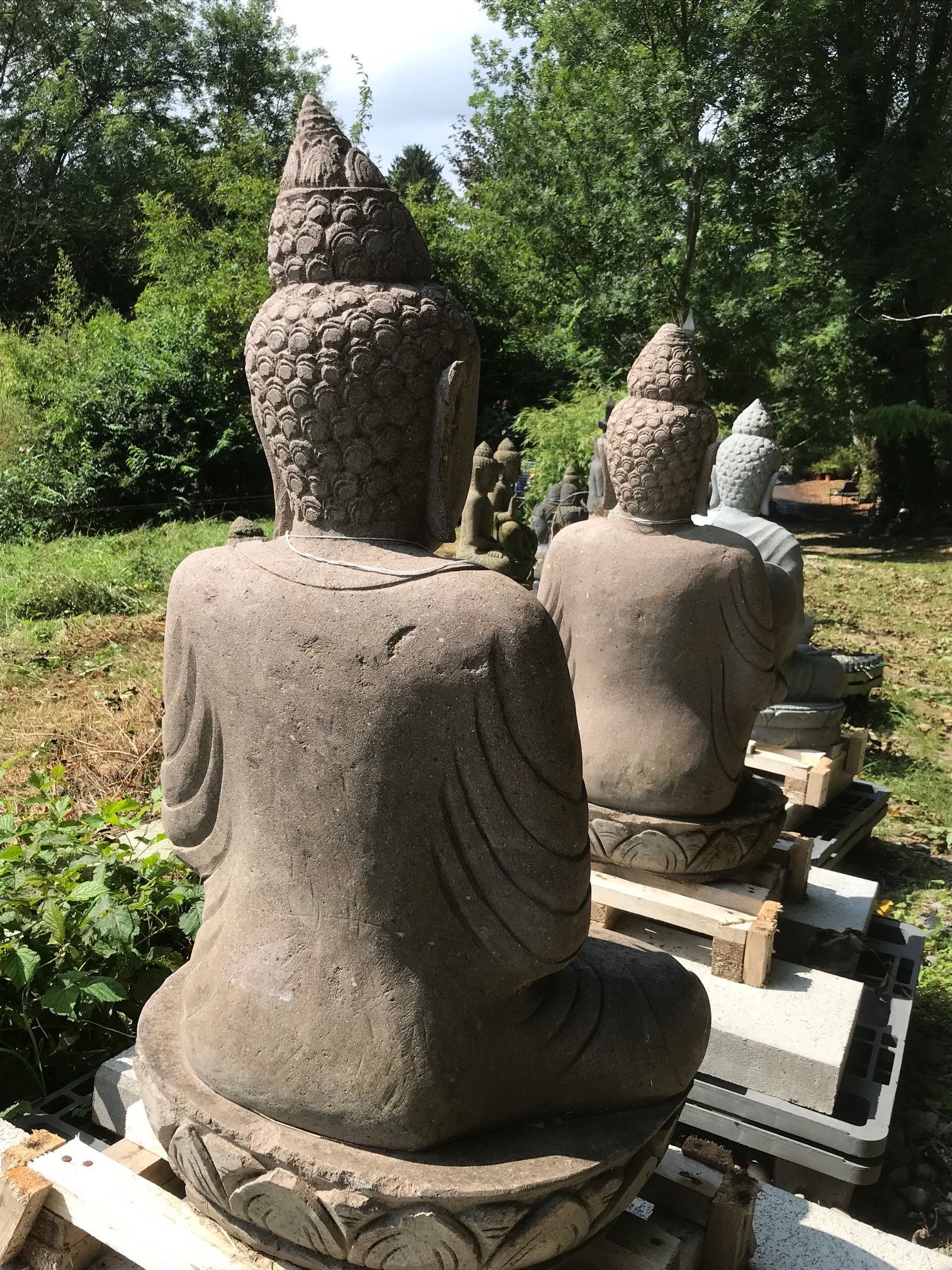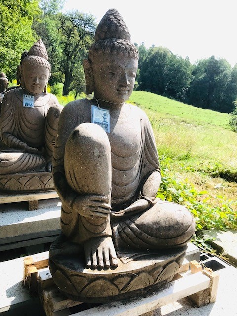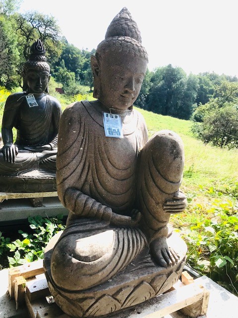 Diese einzigartigen Buddhas wurden in wertvoller Handarbeit aus einem massiven Riverstone (Flusstein) gemeisselt und sind ein Unikat. Der eine Buddha hat das rechte Knie angewinkelt und der andere das linke Knie. Sie können an Hauseingängen oder Hofeinfahrten als Begrüßer der Besucher dienen.