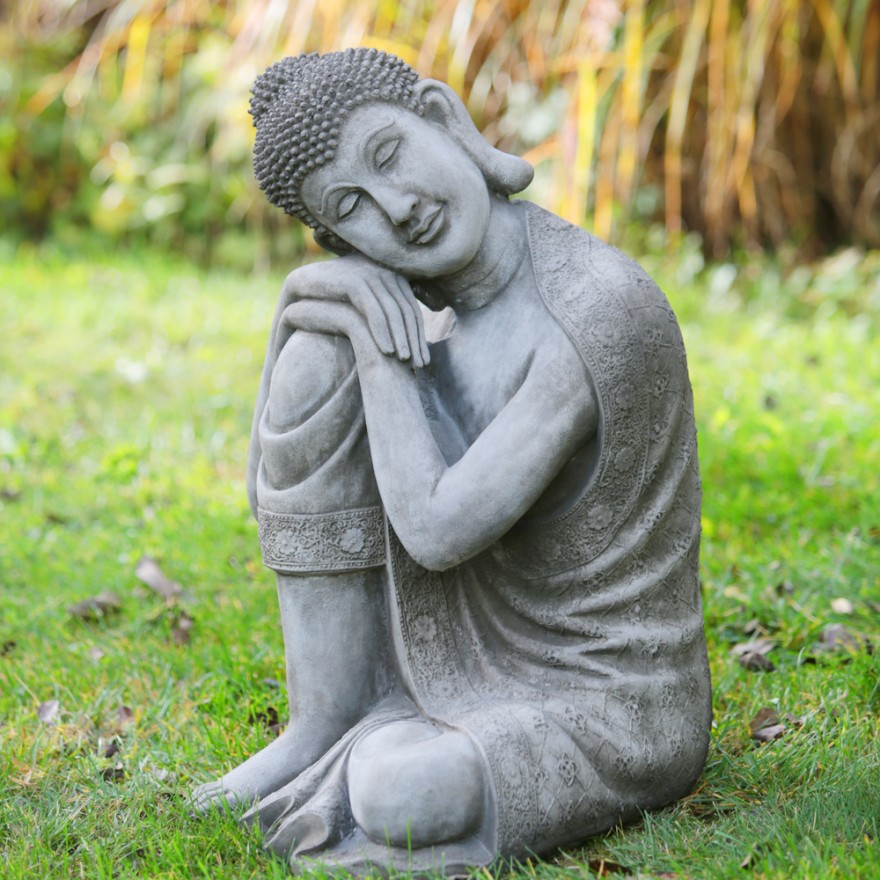 Diese Steinfigur bringt viel Ruhe und Besinnlichkeit in jeglichen Raum, ob drinnen oder draußen.