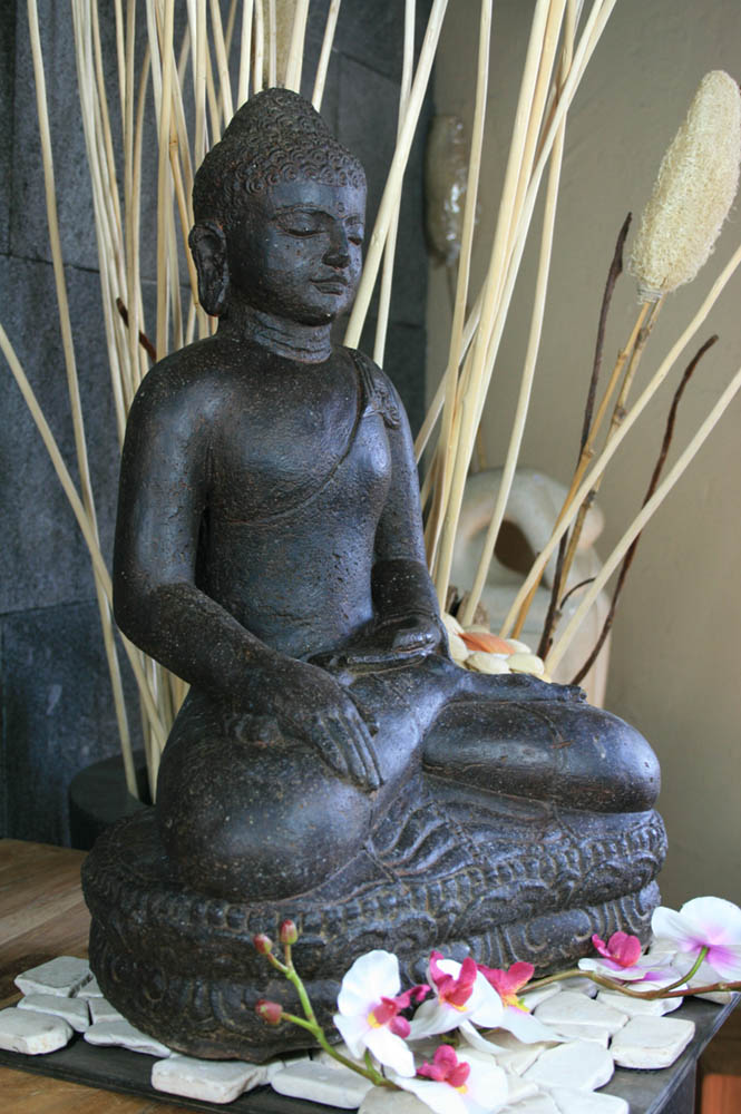 Diese Steinfigur bringt viel Ruhe und Besinnlichkeit in jeglichen Raum, ob drinnen oder draußen.