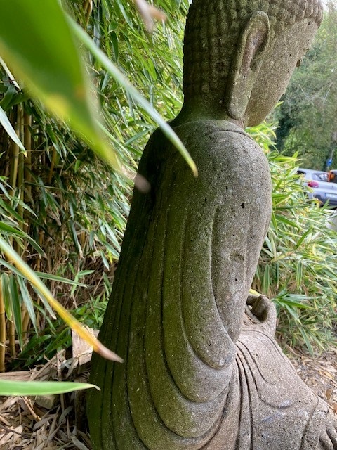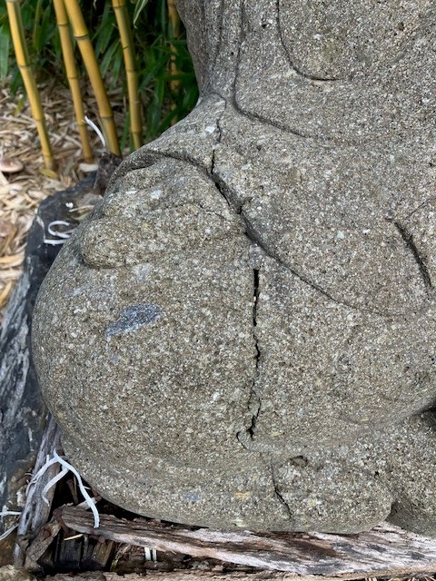 Wegen des Schönheitsfehlers am linken Knie (kleiner Riss) bieten wir den Buddha mit Rabatt an.
