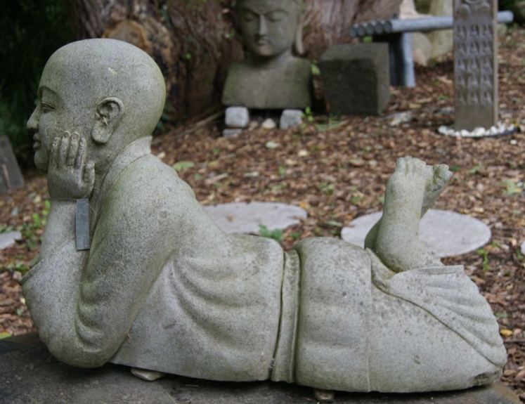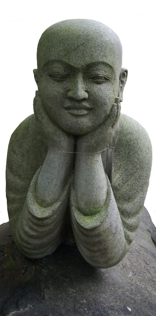 Dieser gelassene Buddha wurde von Hand aus Flussstein geschlagen und ist somit ein wahres Unikat. Mit seinen angewinkelten Armen und den Händen die seinen Kopf tragen verkörpert eine gewisse Gelassenheit und innere Zufriedenheit. Mit den weich fallenden Falten seines Gewands hat der Künstler diese Ausstrahlung noch verstärkt. Der Möch wirkt wie ein in Stein gemeißelter Ruhepol, der Kraft und Besonnenheit ausstrahlt. Er erzeugt eine wunderschöne Atmosphäre und läd zum heimkehren und ausruhen ein.