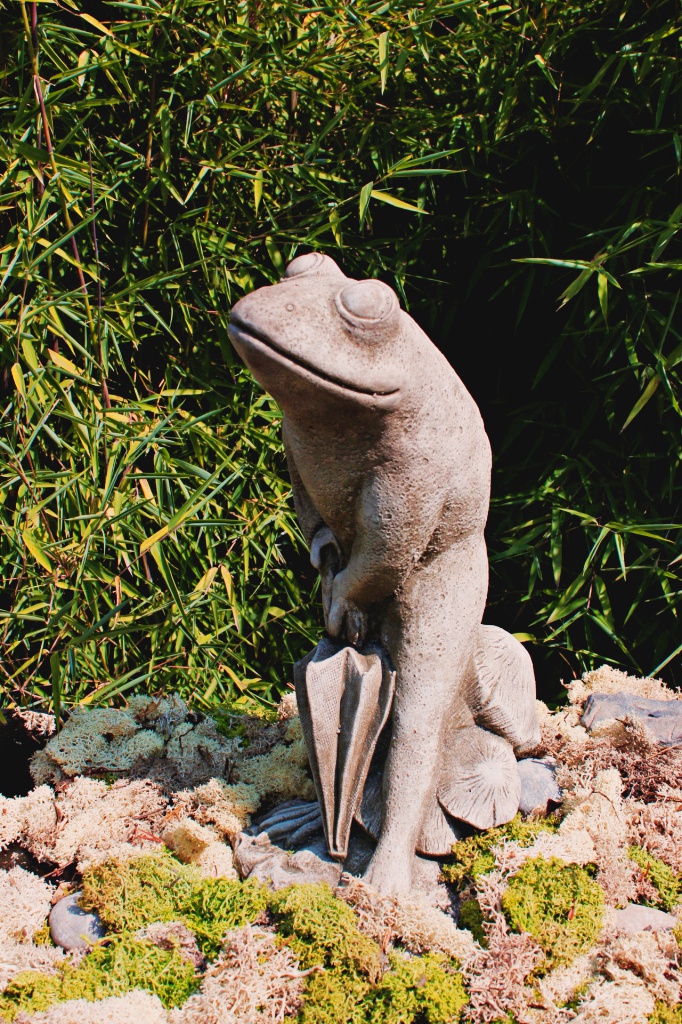 Dieser freundliche Frosch mit Regenschirm ist ein wahrer Wetterfrosch. Er schaut fragend Richtung Himmel, bereit jederzeit seinen Schirm zu öffnen. Vielleicht symbolisiert er die Fähigkeit auch für etwas regnerische Tage gewappnet zu sein. Denn was machen schon ein paar Tropfen wenn man einen Schirm dabei hat? So kann die richtige Einstellung einem helfen, auch wenn es mal ungemütlich wird.