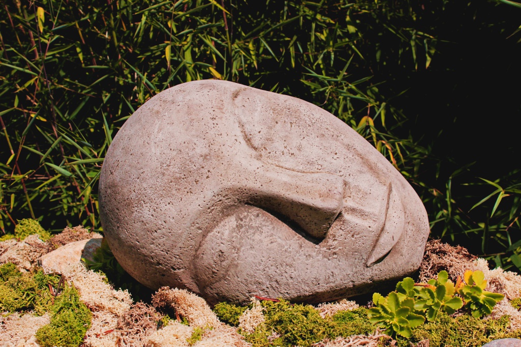 Mit diesem wunderschönen Steinkopf kann man einen tollen Akzent setzen. Ob liegend auf einer Grünfläche, versteckt zwischen Blättern und Halmen oder gut sichtbar auf einem Tisch oder einer Fensterbank, fängt er viele Blicke ein. Denn auf den ersten Blick wirkt er mit seiner runden Form wie ein Stein, doch bei genauerem Hinsehen erkennt man die feinen Züge, die wir sofort als Gesicht wahrnehmen. Sein Gesichtsausdruck ist ruhig und entspannt. Besonders wenn er von der Sonne angestrahlt wird hat dies einen beruhigenden Effekt auf den Betrachter, da man seinen Gesichtsausdruck automatisch spiegelt.