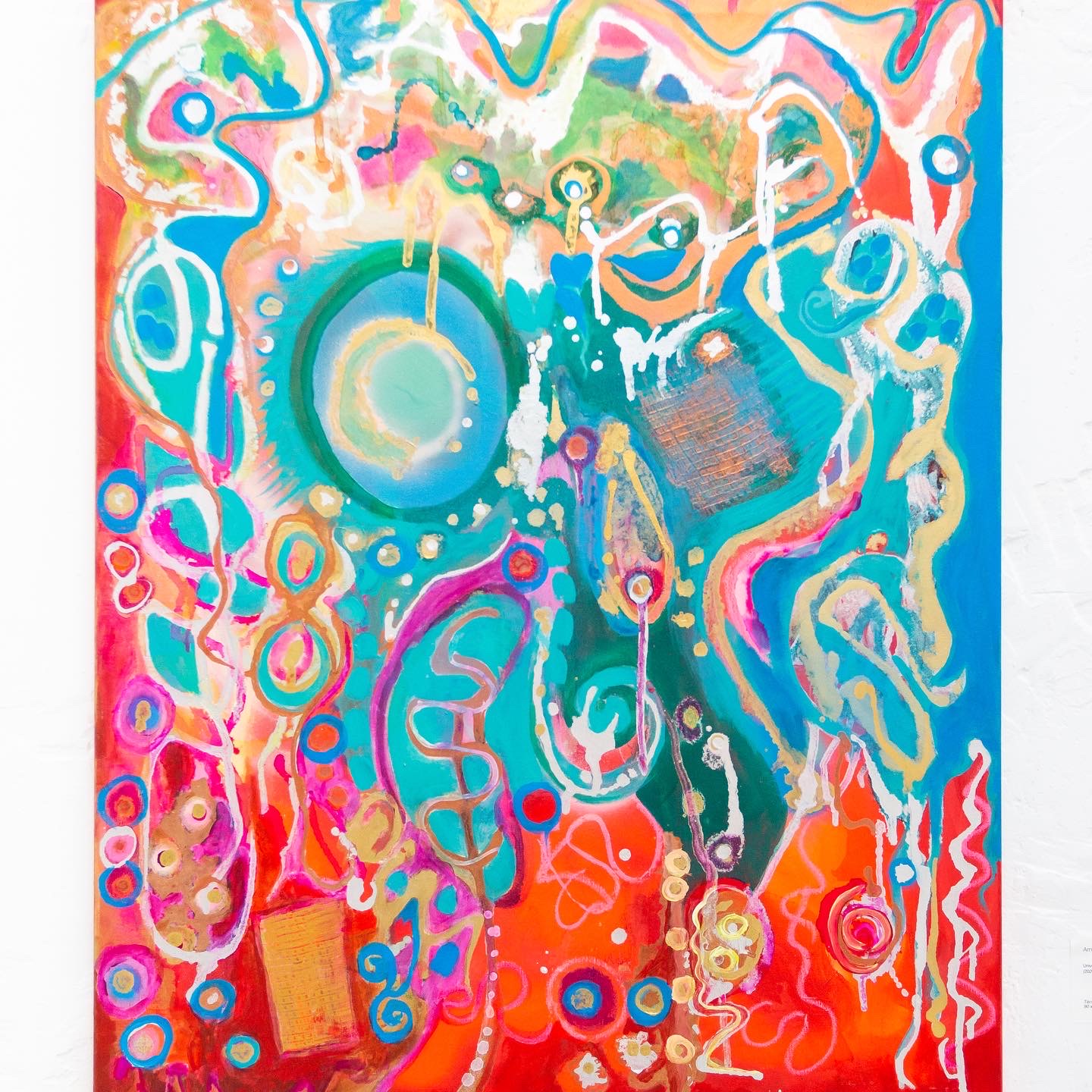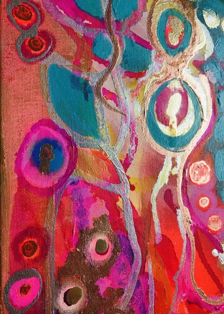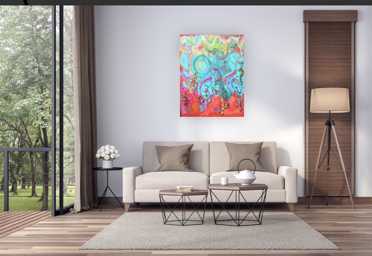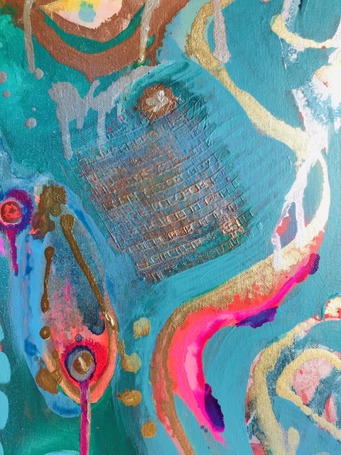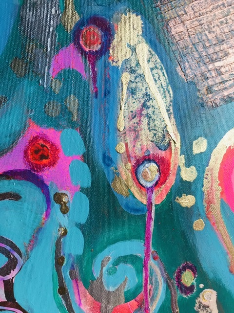 This beautiful abstract painting ``universe of colors`` is painted with high quality acrylic colours and inks (miced media). The diferent layers have a lot of golden and metallic effects.The colours do not smell and are vibrantly intensive painted on a professional canvas.