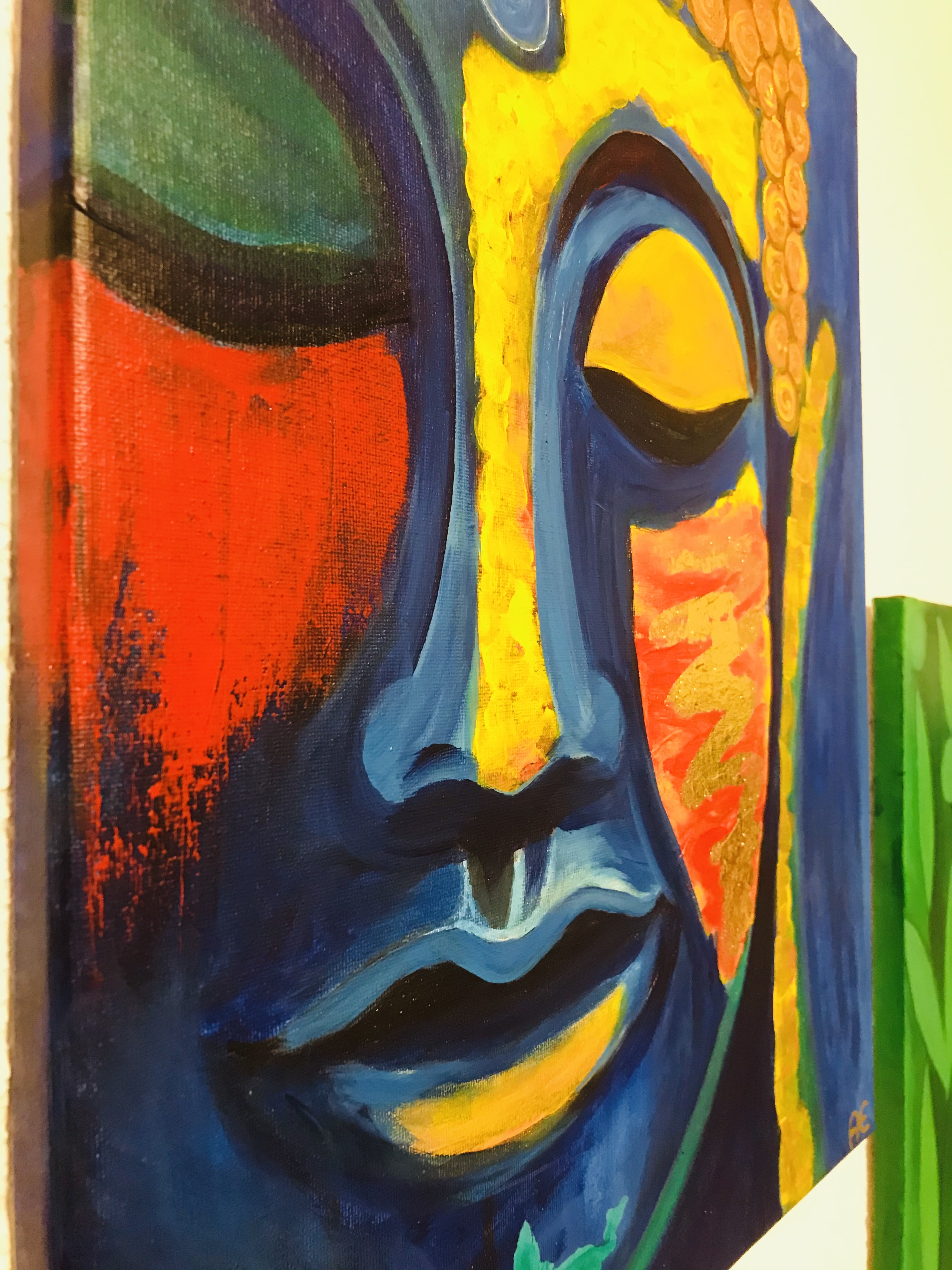 Dieser wunderschöne Buddha Gemälde wurde mit hochwertigen Acrylfarben auf Leinwand handgemalt.