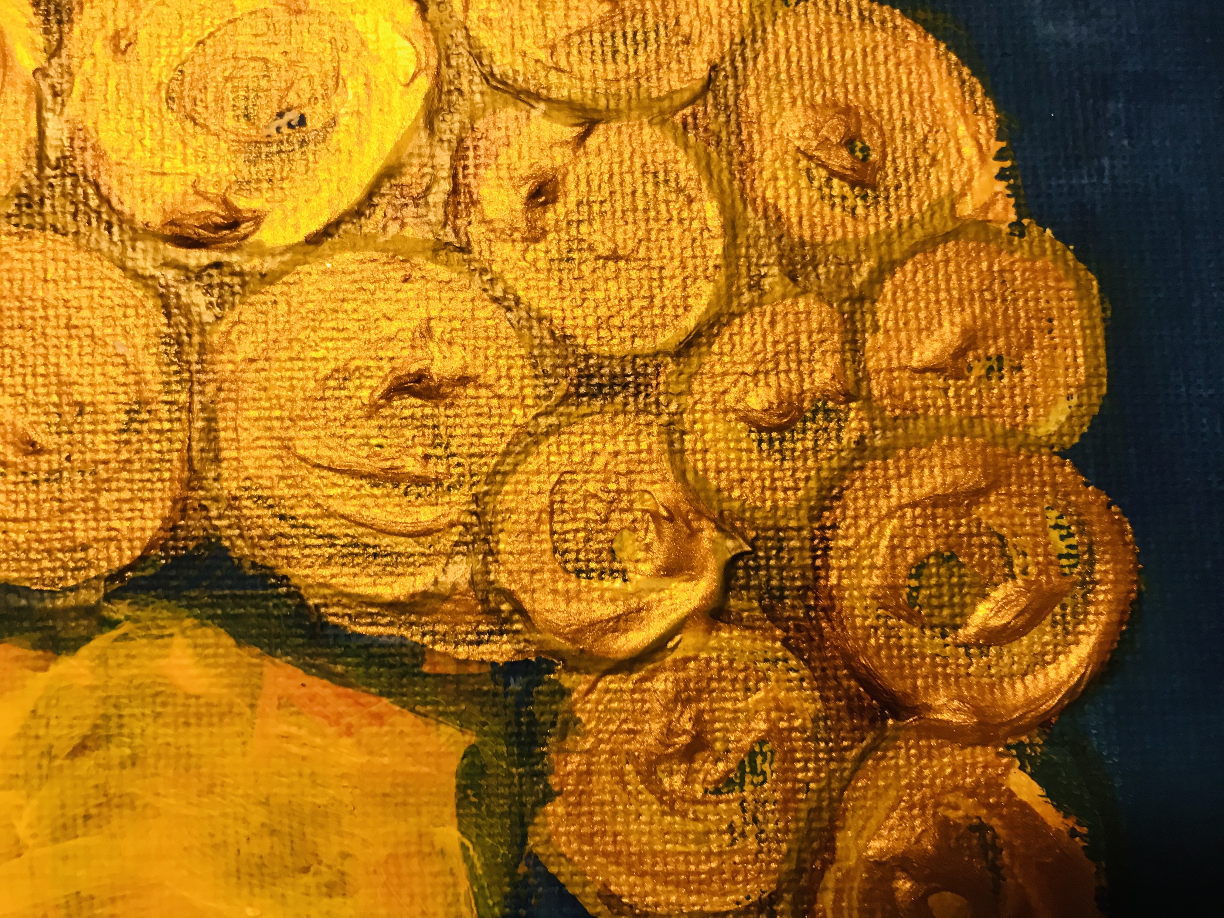 Es hat auch einige Goldeffekte (Blattgold), die es zum strahlen bringen.