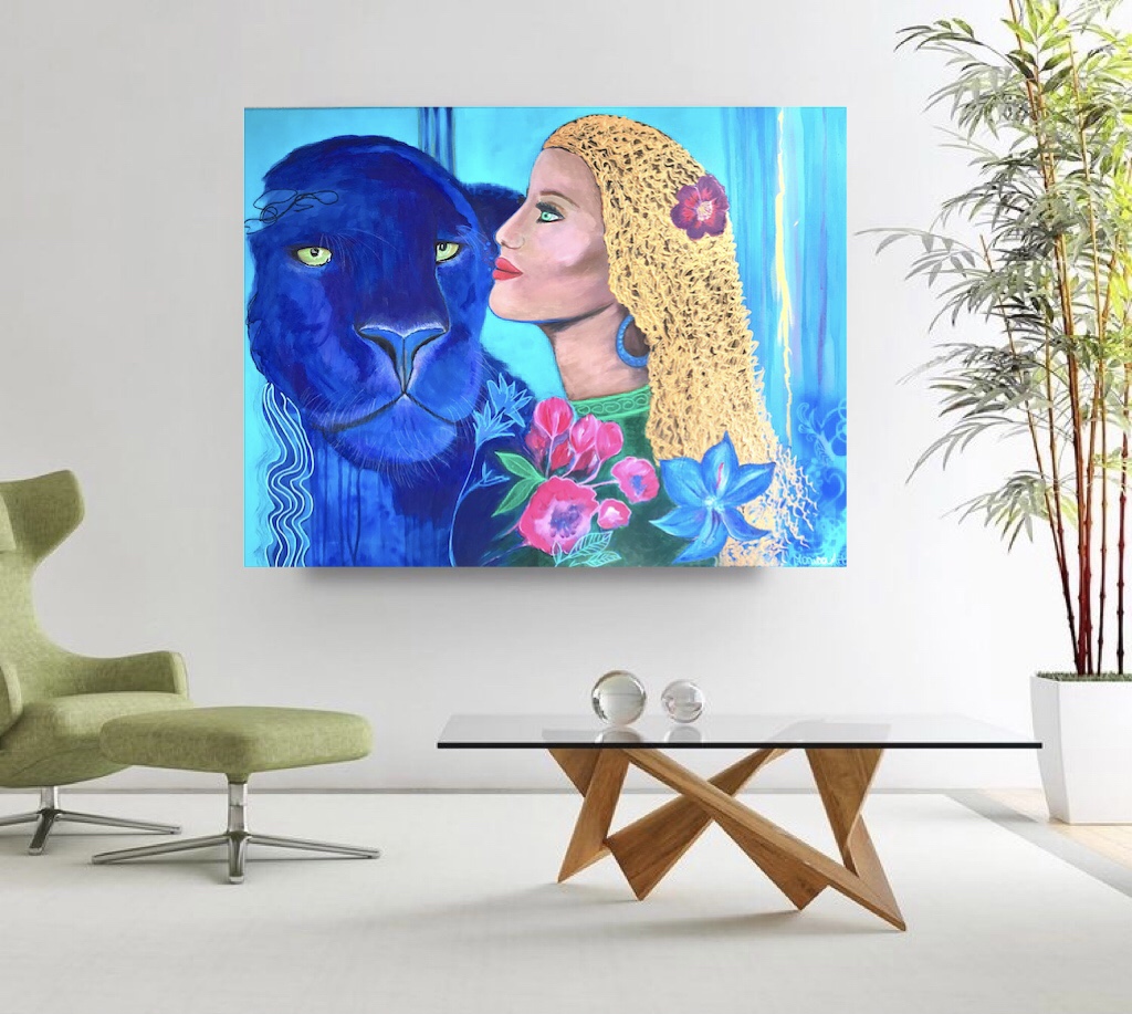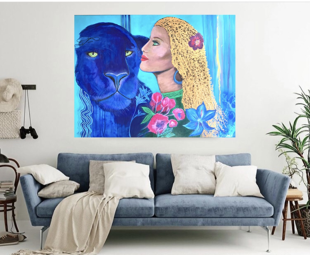 Das Gemälde ´´UNCONDITIONAL LOVE`` (Bedingungslose Liebe) ist eine Kreation, die eine Frau mit einem Panther zeigt. Die beiden scheuen keine Nähe. Wahre Liebe kennt keine Grenzen. Das Bild entstammt aus einem Traum der Künstlerin. Es wurde mit viel Liebe zum Detail kreiert und zeigt die Welt der jungen Lady im Traum.