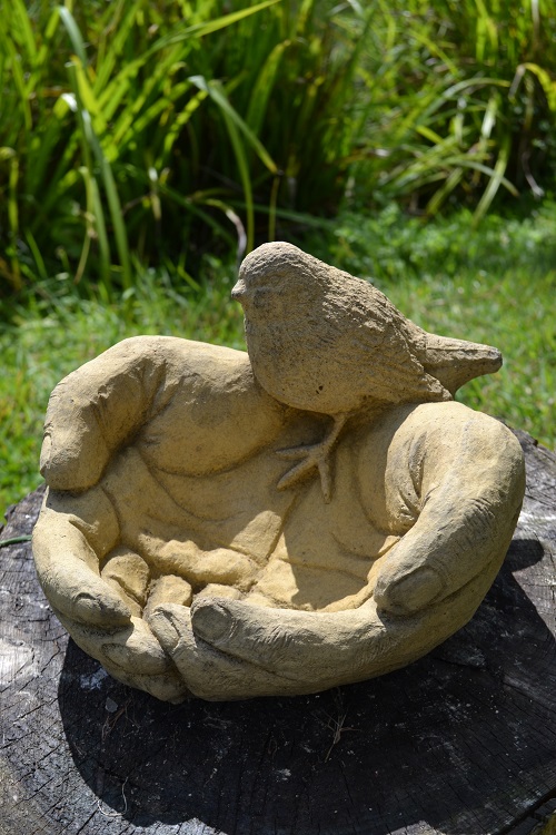 Diese wunderschöne Vogeltränke läd Vögel förmlich dazu ein sich in ihr zu laben. Die geöffneten Hände sind ein inniges Symbol für Vertrauen, Liebe und Hingabe. Alleinstehend ist diese Tränke schon ein absoluter Hingucker, mit Wasser gefüllt jedoch umso schöner. Ein irisches Segenslied besagt:,, Und bis wir uns wiedersehen, halte Gott dich fest in seiner Hand.'' So ist diese Figur auch ein tolles Geschenk für einen geschätzen Menschen.