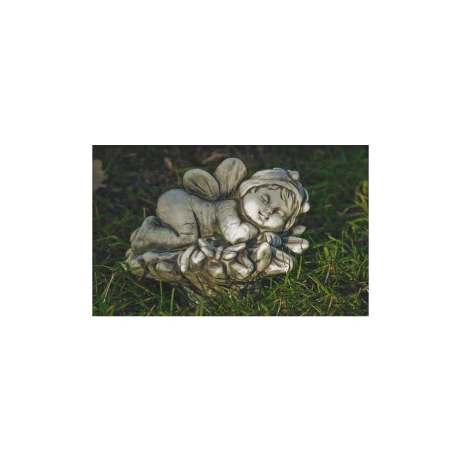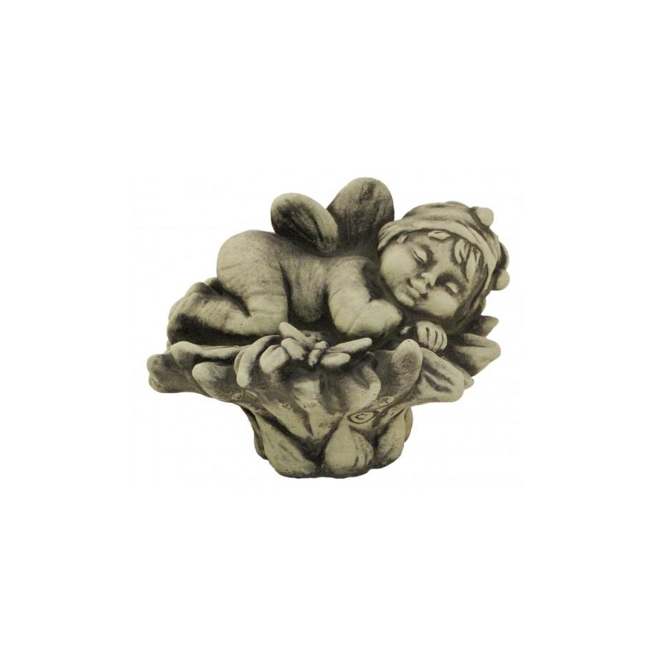 Das zarte Kind liegt mit einem Schmetterling auf einer geöffneten Blüte und schläft im Sonnenschein. Dieses hübsche Elfenkind gibt ein wunderschönes, symmetrisches Bild ab und strahlt Ruhe und Frieden aus. Es ist für den Innen- wie auch Außenbereich geeignet. Je nach Plazierung kann man eine ganz individuelle Wirkung entfalten. Versteckt zwischen großen Blättern und langen Halmen ist es geheimnisvoll und mystisch. Stellt man das zarte Wesen gut sichtbar auf einen Stein, Tisch oder eine Fensterbank ist sie wie ein Ruhepol, der das gesamte Ambiente verändert