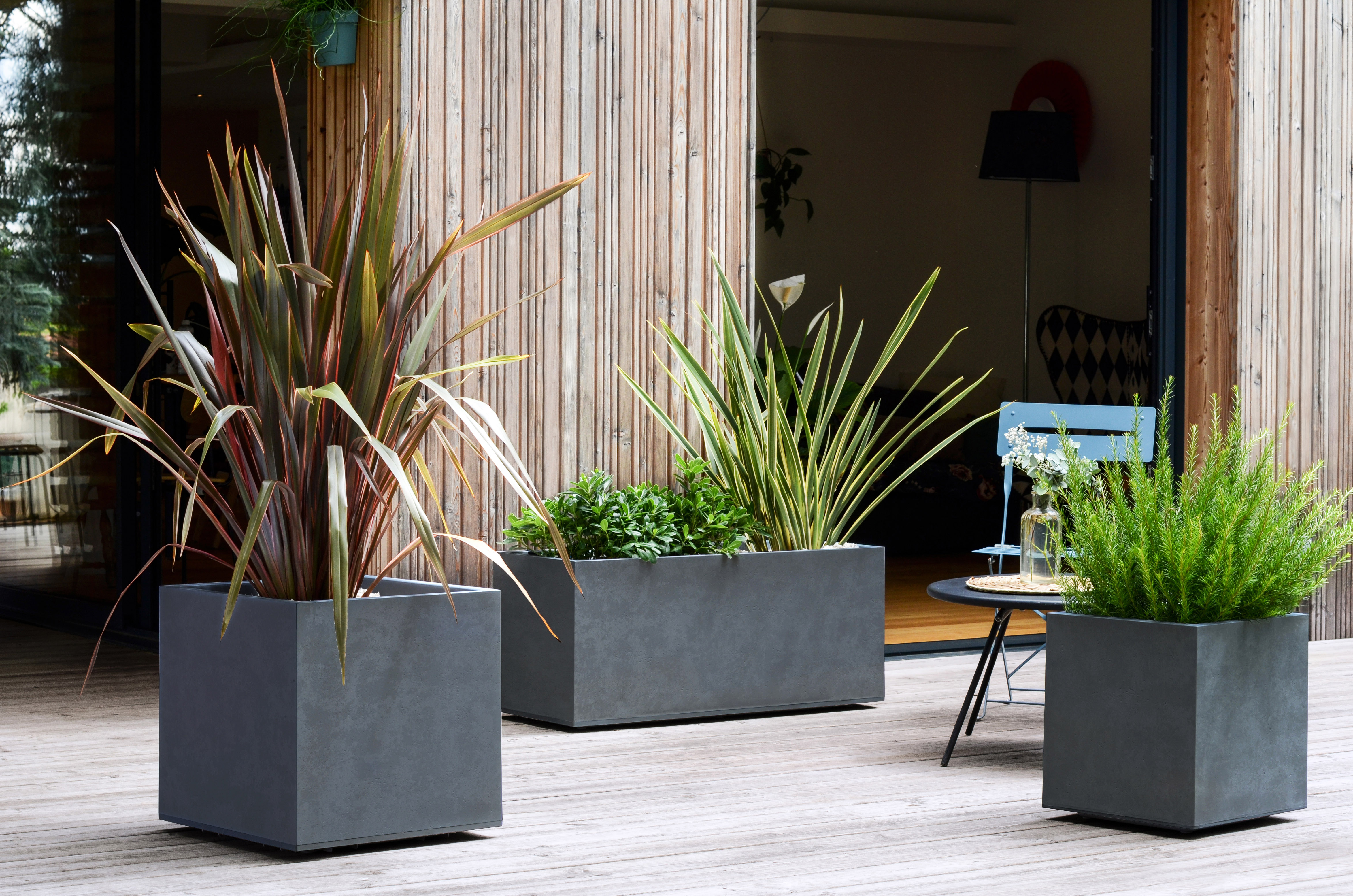Dieser schöne Pflanzkasten in Betonoptik (BASALT) gibt es in zwei Größen. Sie sind geeignet für kleinere Flächen, Terrassen und Balkone, im Einzelstand oder wenn mehrere Blumenkästen nebeneinander platziert werden. Der Pflanzkasten verfügt über ein höheres Eigengewicht, was ihn standfest macht. Nach der Bepflanzung ist der Blumenkübel so schwer, dass er auch bei Sturm an seiner Position stehen bleibt. Der schöne graue Farbton harmoniert mit jedem Bambus oder Gras. Gepflanzt werden kann in dem Blumenkasten fast alles, von Stauden über Bambus, ja sogar Palmen. Der Pflanzkasten in Steinoptik ist zeitlos schön, langlebig und frostfest.