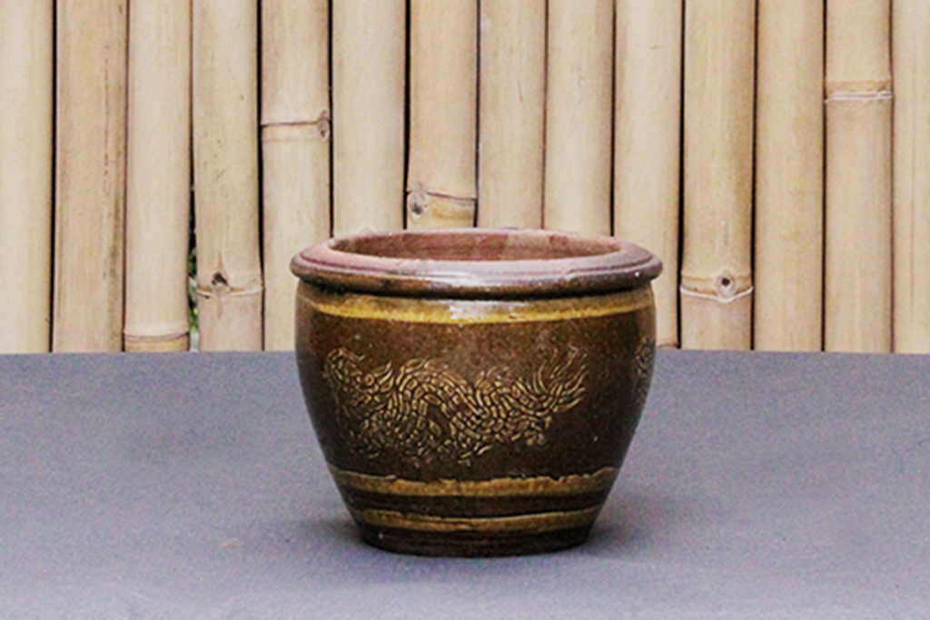 Diese Pflanztöpfe sind durch die Abbildung eines chinesischen Drachens besonders anmutig. Mit seinem asiatischen Flair ist er ein wunderbarer Topf für östliche Pflanzen wie Bambus, aber auch genau so für alle anderen Pflanzen, die einen besonderen Topf verdient haben. Das gebrannte Terrakotta verleiht ihm ein warmes, natürliches Aussehen.