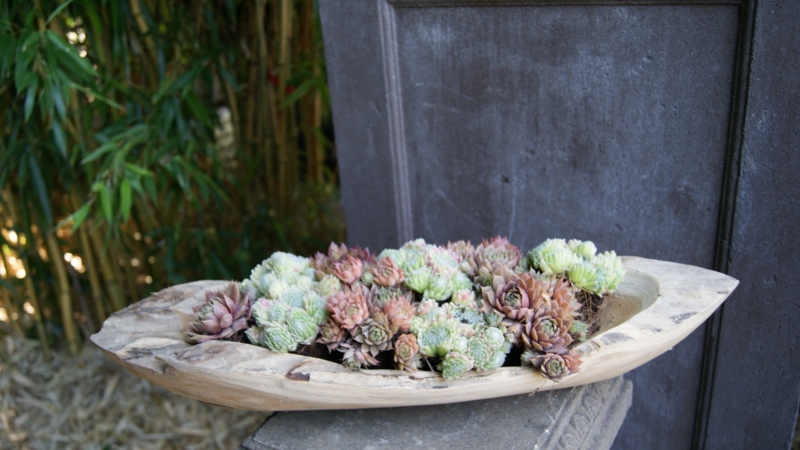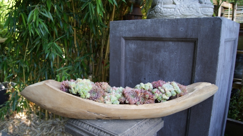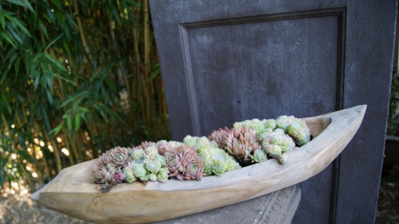 Bepflanzung besteht aus verschiedenen Sempervivum/Dachwurz. Sie kann auch ohne Pflanzen bestellt werden.