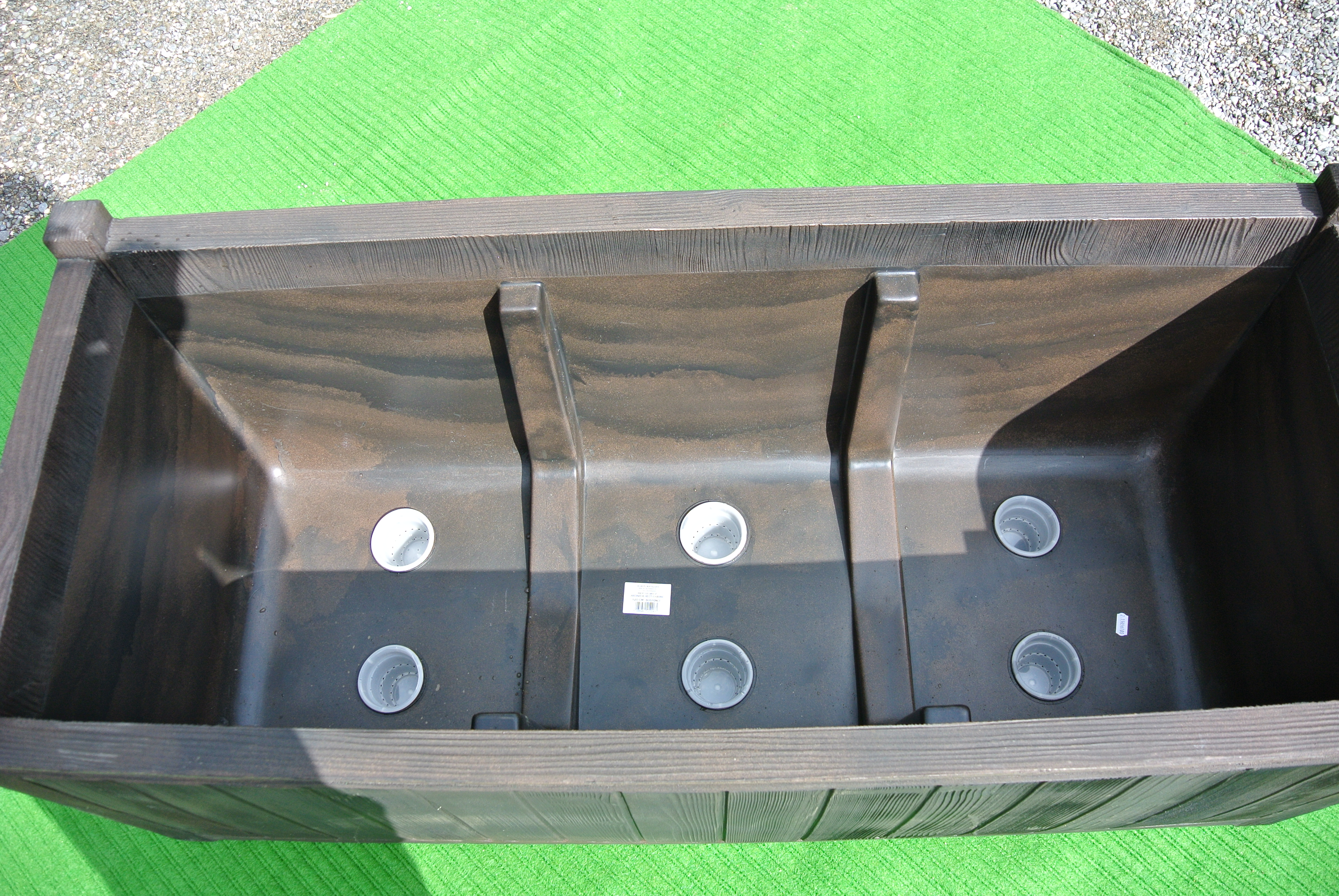 Dieser schöne Pflanzkasten in Holzoptik ist geeignet für kleinere Flächen, Terrassen und Balkone, im Einzelstand oder wenn mehrere Blumenkästen nebeneinander platziert werden. Der Pflanzkasten verfügt über ein höheres Eigengewicht, was ihn standfest macht. Denn nach der Bepflanzung ist der Blumenkübel so schwer, dass er auch bei Sturm an seiner Position stehen bleibt. Der schöne braune Farbton harmoniert mit jedem Bambus oder Gras. Gepflanzt werden kann in dem Blumenkasten fast alles, von Stauden über Bambus, ja sogar Palmen. Der Pflanzkasten ist zeitlos schön, langlebig und frostfest.