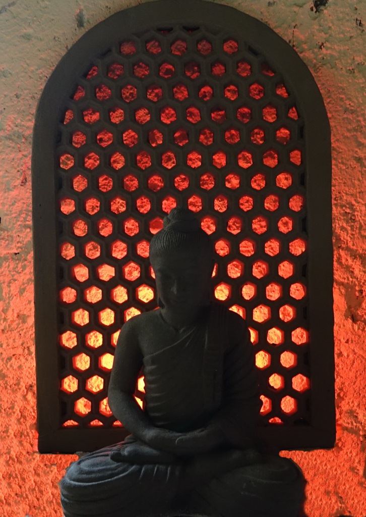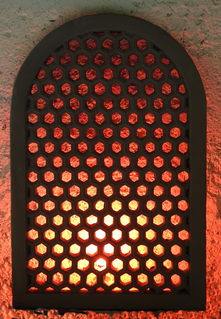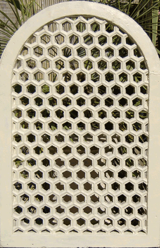 Jali (aus der alten Sankritsprache ‚Netz‘, ‚Gitter‘) ist ein den Raum begrenzendes oder teilendes senkrechtes gitterförmiges Bauelement mit einer durchbrochenen meist ornamentalen Struktur. Im Westen wurde der ,Palast der Winde` in Jaipur in einem Historienroman erwähnt und in diesem Gebäude gibt es unzählige Jalis. Das 1798-1799 errichtete Haus diente dazu, den Haremsdamen des Königs einen Blick auf die prunkvollen Festzüge zu ermöglichen. Jalis bekannt aus dem Orient, Türkei, bis Indien und Indonesien, Nordafrika, Spanien etc. werden als Fenster, Balkonbrüstung oder Raumteiler benutzt und bestehen, häufig aus fein gearbeiteten Ornamenten oder aus floralen Motiven, die in oft gerundeten oder eckigen fließenden Formen Blumen oder auch Sterne zeigen. Sie werden oft aus Stein gemeißelt, meist Sandstein oder auch aus Holz geschnitzt oder im Steingussverfahren hergestellt. Die von uns angebotenen Jalis kommen aus Jaipur, Rajhasthan in Indien.