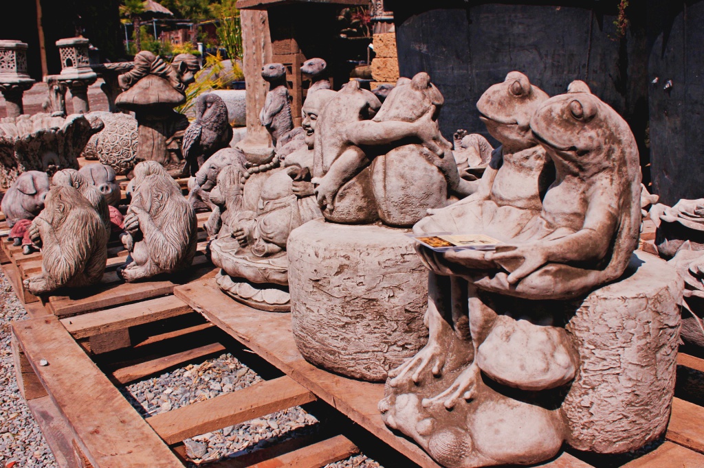 Nach der Herstellung werden die Frösche mit einem Antikfinish versehen. Dieses verleiht ihnen einen individuellen Charakter und lässt die Konturen stärker hervortreten. Die Figur ist witterungsbeständig und frostsicher, wenn kein direkter Bodenkontakt besteht z.B. durch eine Steinplatte oder Kies/ Drainage.