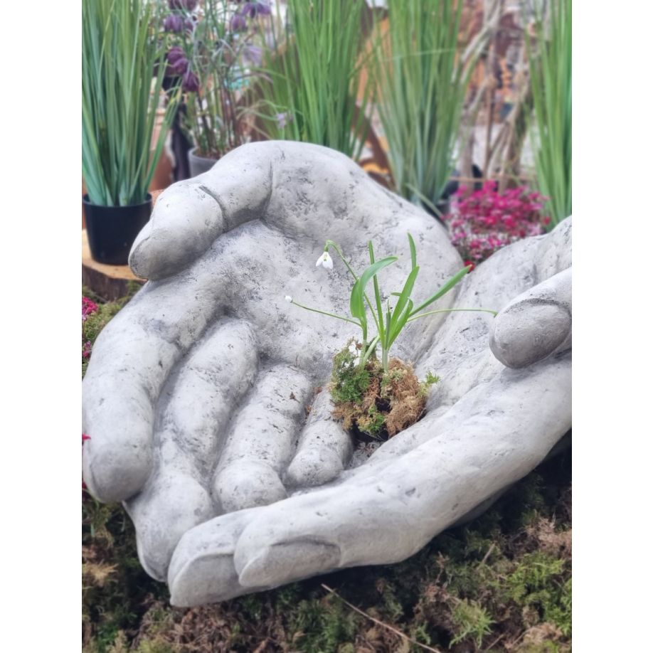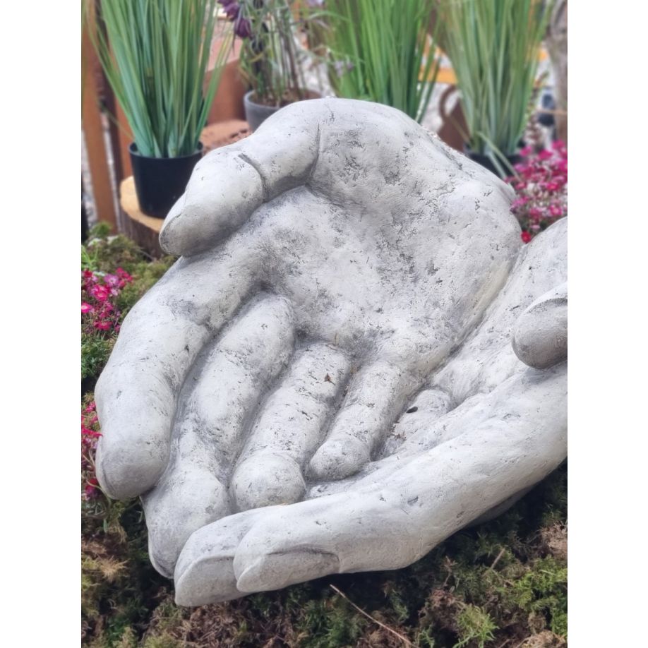 Geöffnete Hände aus winterfestem Kunstformstein. Mit Bepflanzung mit Sedum/Sempervivum sieht es wunderschön aus.