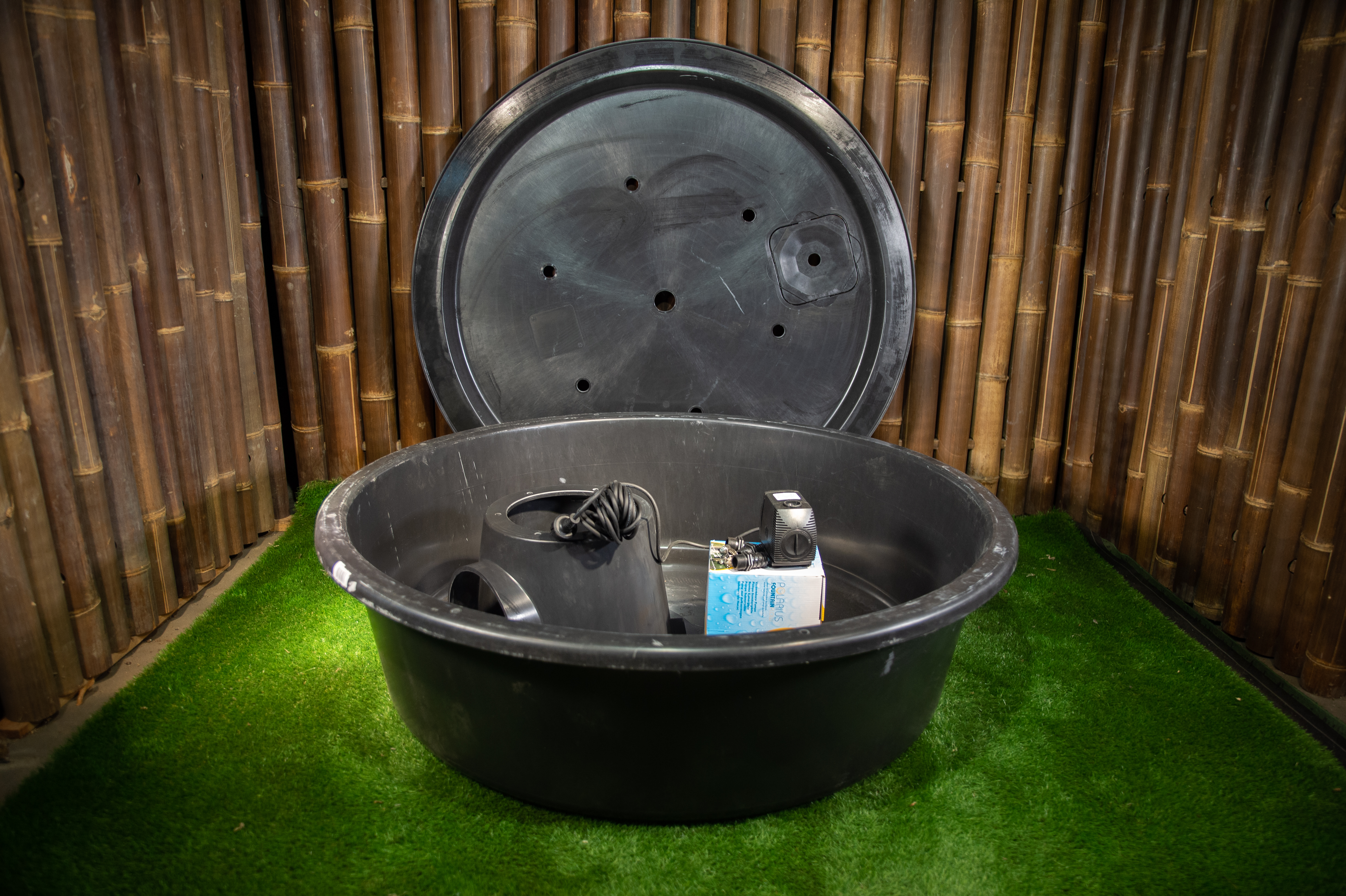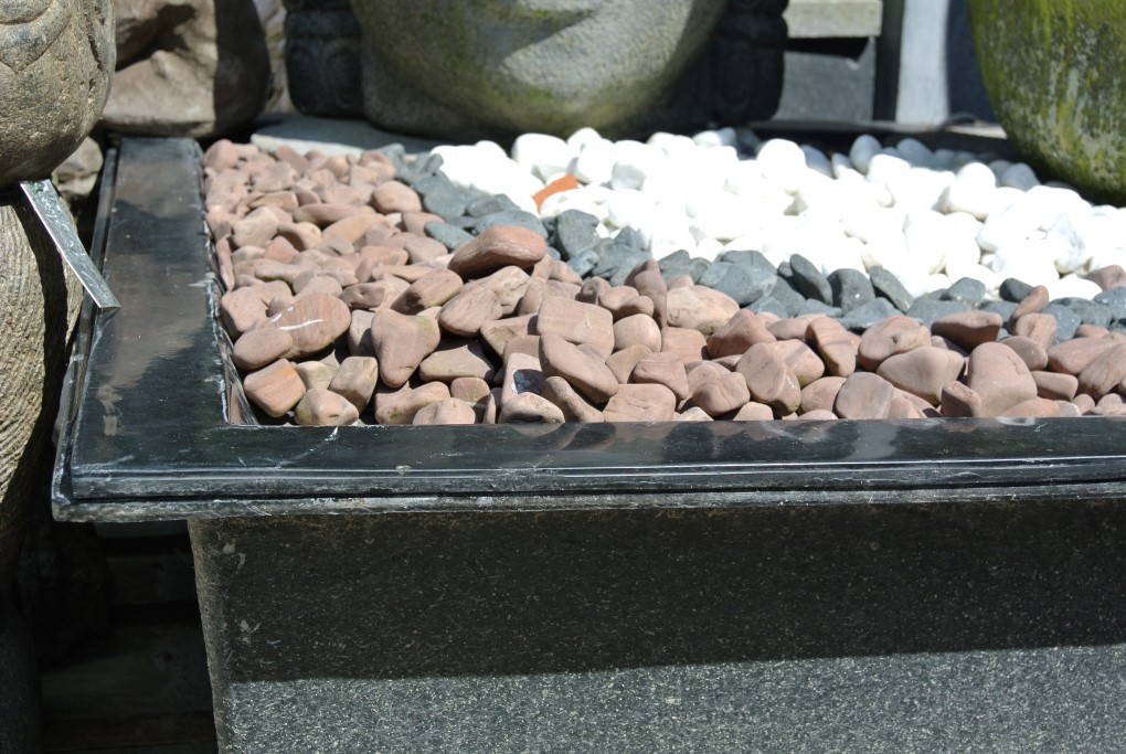 Sie brauchen nur die Becken ca. 35cm im Erdreich plan vergraben, die Pumpen mit 10m Erdkabel anschließen, den Lastenträger mittig platzieren und darauf den gelochten Deckel setzen. Mit dem beiliegenden Schlauch wird das Wasserspiel auf dem Deckel mit der Pumpe im Becken verbunden. Die Deckel sind mit einer vorbereiteten Revisionsklappe versehen, so dass Sie leicht an die Pumpe im Becken kommen und diese im Winter heraus nehmen können. Zum Abschluss können Sie das Becken mit Kies nach Wunsch dekorieren. Wählen Sie den Kies jedoch nicht zu klein, sonst fällt er durch das Loch!