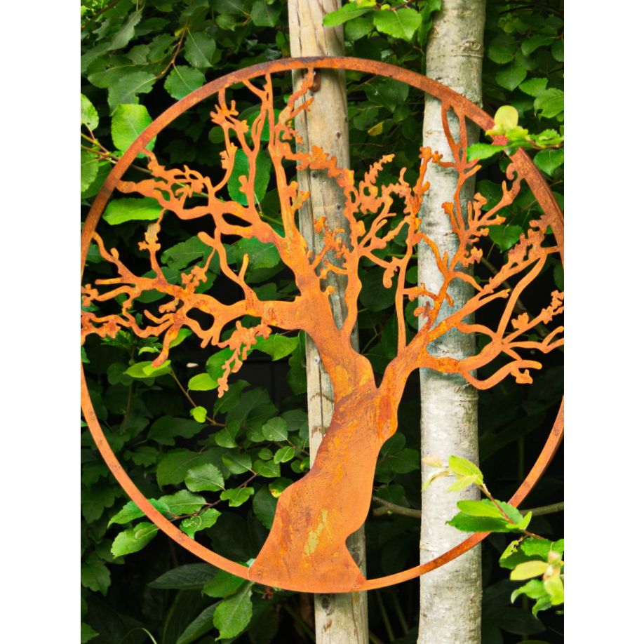 Der wunderschöne Metallbaum ``Afrika`` aus gerosteten Metall hat eine ganz besondere Oberfläche in einem leuchtenden rostig-roten Farbton. Damit steht sie in einem wunderschönen Kontrast zum Grün der meisten Pflanzen. Da Grün und Rot Komplementärfarben sind verstärken sie sich gegenseitig. Mit ihr kann man so dekorative Akzente setzen und hier und da einen Hauch von Rot mit ins Bild geben.