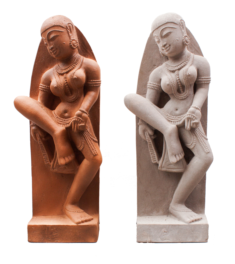 Apsaras sind in der hinduistischen und Teilen der buddhistischen Mythologie halb menschliche, halb göttliche Frauen, die im Palast des Gottes Indra leben. Die himmlischen Tänzerinnen gelten auch als Geister der Wolken und Gewässer. Sie ist ein Nachbildung einer Figur aus dem 10. Jahrhundert von den Tempelanlagen in Khajuraho. In dieser Tempelanlage gab es viele sinnlich- erotische Darstellungen, was darauf hindeutet dass es zu dieser Zeit eine Verehrung der Kamasutra und Vatsyayana- Lehren und tantrische religiöse Riten gab. Ihr nackter Körper wirkt sehr plastisch und lebensecht. Ob im Innen- oder Außenbereich, sie versprüht einen sinnlichen Charme, kombiniert mit der geheimnisvollen Mystik Indiens.