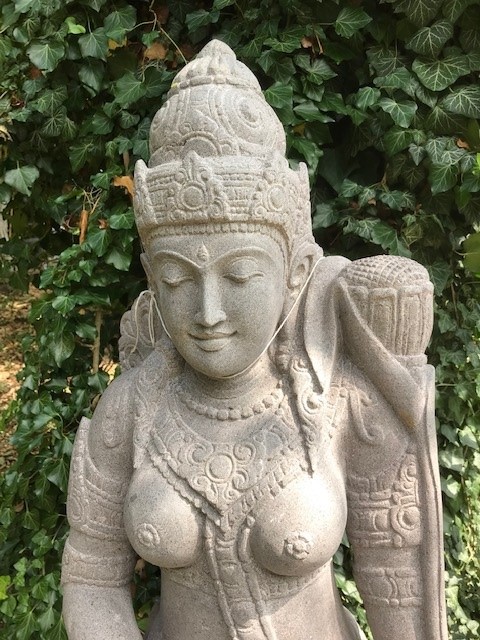 Bedeutung: Dewi bedeutet wörtlich Göttin. Es ist eine javanische, sundanesische und balinesische Hindu-Göttin des Reises und der Fruchtbarkeit. Nach der Mythologie stammt Dewi Sri von der Insel Java und ist auch heute noch dort und auf Bali im menschlichen Glauben fest verankert. Steinfiguren von Dewi Sri findet man in unzähligen Tempelanlagen auf diesen beiden Inseln. Nach der Annahme des Hinduismus auf Java, wurde Dewi Sri mit der Hindu-Göttin Lakshmi assoziiert, da beiden Wohlstand in der Familie zugeschrieben wird. Die Figuren werden meist als junge, schöne, schlanke, aber kurvenreiche Frauen mit stilisierten Gesichtszügen dargestellt. Im wesentlichen ist Dewi Sri eine Frau auf dem Höhepunkt ihrer Weiblichkeit und Fruchtbarkeit.