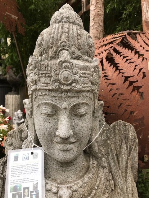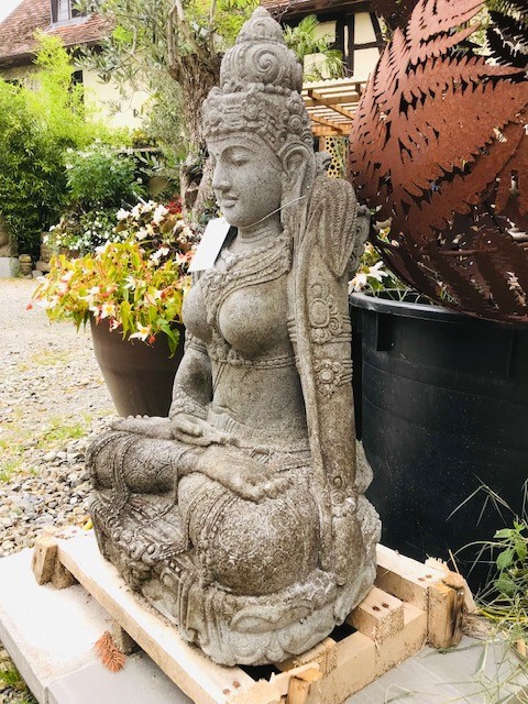 Diese wunderschöne Dewi Tara ist in jedem Garten ein Blickfang. Die Figur ist 84cm hoch und wiegt ca. 100kg.