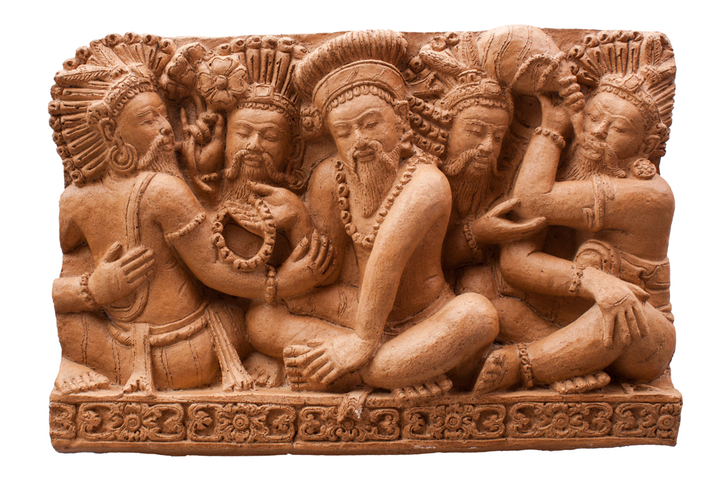 Das Khmer- Reich in Kambodscha hatte im 10 Jahrhundert seine Blütezeit. Während dieser wurden riesige, prunkvolle Tempelanlangen gebaut. Angkor Wat ist die bekannteste darunter. Aus dieser stammt das Original dieses Nachgusses von den Männern beim Mahl.