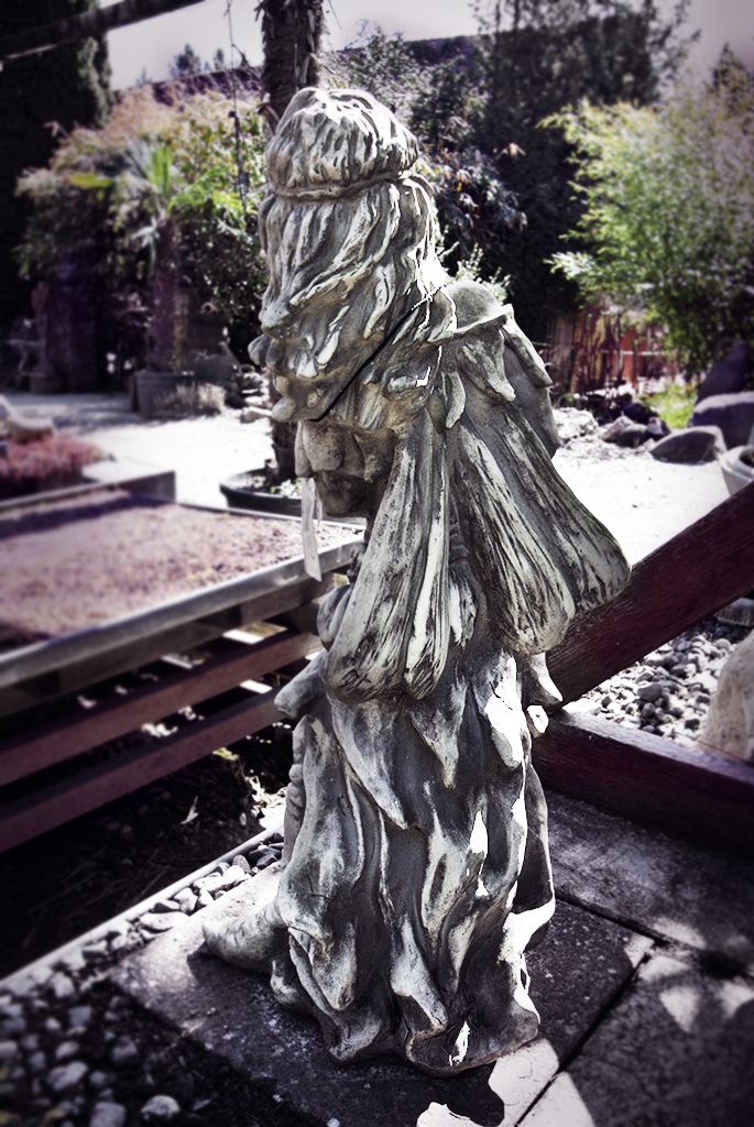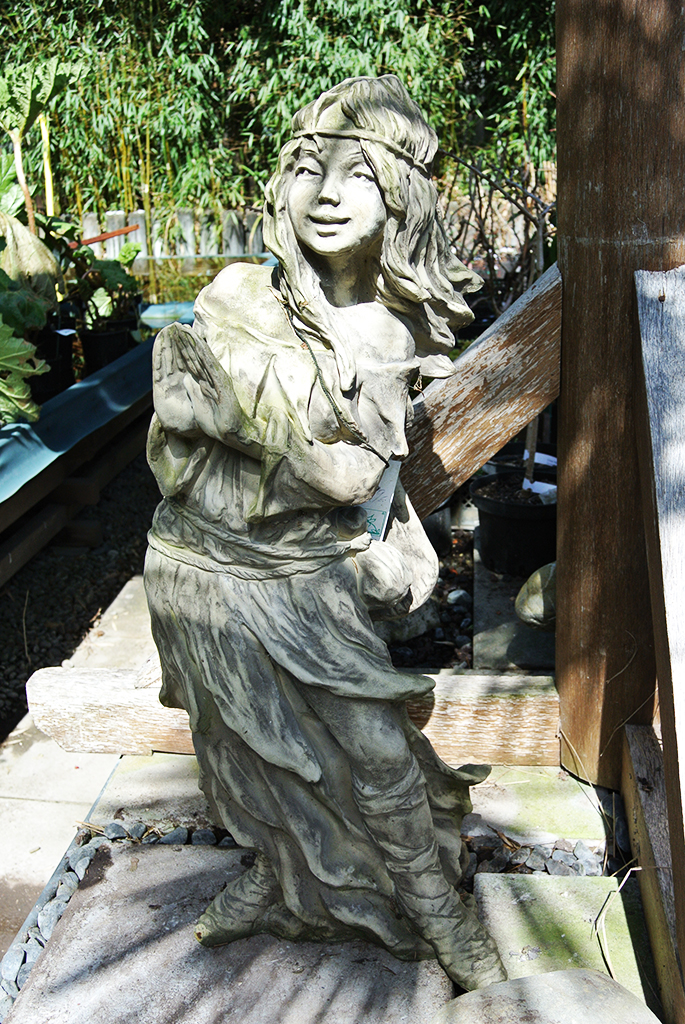 Wenn Brünhild zwischen ihren Pflanzen steht, verleiht sie dem Garten, mit ihrer wahrhaft 'fabel'-haften Gestalt einen ganz besonderen, märchenhaften Zauber. Ihr fein ausgearbeitetes, plastisches Gewand lässt sie besonders lebendig wirken. Die Hände mit den Handflächen nach vorn, wie zu einer Segnung oder einem Zauberspruch geben ihr das zarte Aussehen einer Schutzgöttin, die sich um das Wohl der Pflanzen und Tiere kümmert. Kombiniert mit anderen Fabelwesen, wie Elfen, Trollen, Engeln oder Drachen kann man mit ihr ein märchenhaftes Stillleben erschaffen. So taucht man ab in eine Welt mit Zauber und Magie, die zum Träumen einläd.