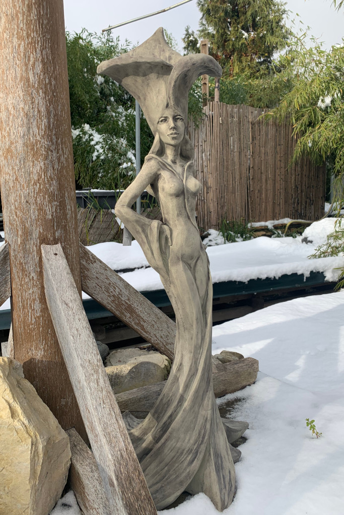Die Silhouettes des „Fleur Calla“ wirkt mit ihrer Größe von knapp über einem Meter wie eine reale Blumenfee in Lebensgröße. Ihre elegante Körperhaltung in Kombination mit der Kopfbedeckung als Blütenform strahlt eine besondere Atmosphäre aus, welche es dem Betrachter erschwert seine Blicke wieder davon abzuwenden.
