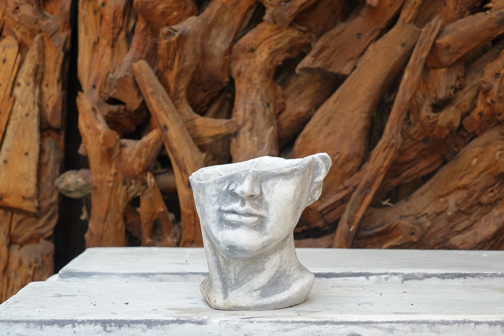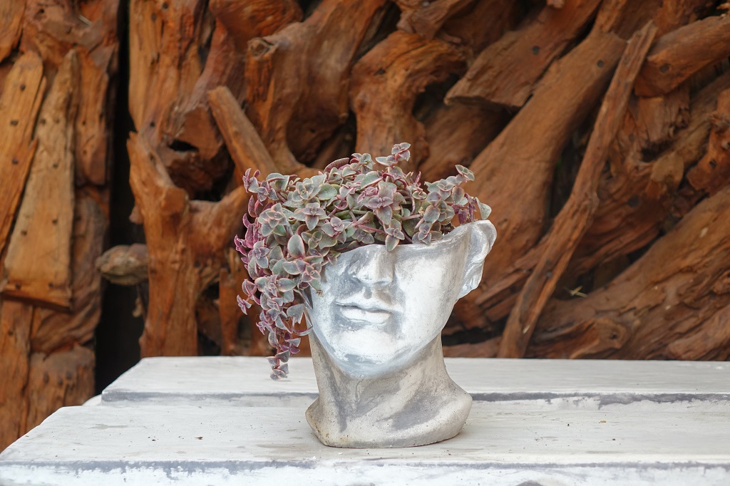 Der Pflanzkopf passt sich hervorragend an seine Umgebung an und fühlt sich vor ihrer Haustür auf der Treppe oder in Ihrem Garten zwischen Pflanzen sehr wohl.
