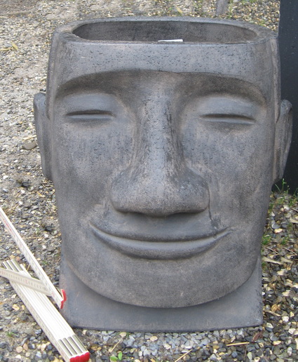 Dieser freundliche, wunderschöne Osterinselkopf kann mit verschiedenen Pflanzen bepflanzt werden. Dadurch kann man ganz unterschiedliche ,,Frisuren'' erzeugen. Z.B Langhaarfrisuren mit Hängepflanzen oder Wuschelköpfe durch die Bepflanzung mit langen Gräsern. Sein Vorbild sind die 1500 Jahre alten Steinköpfe der Osterinseln, welche wahrscheinlich zu zeremoniellen Zwecken dienten.