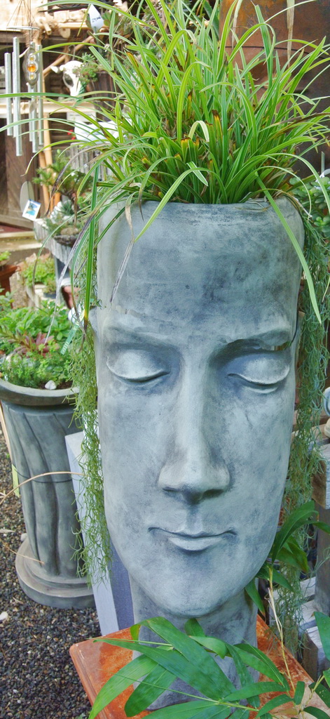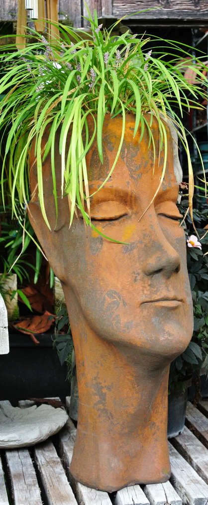 Durch das Bepflanzen dieses einmaligen Frauenkopfes können je nach Pflanze ganz unterschiedliche ,,Frisuren'' erzeugt werden. Langes Haar in Form von Hängepflanzen, Wuschelköpfe durch lange Gräser oder sogar im Afro- Look. Sie wird nach der Herstellung mit einem speziellem Finish versehen, welches die Details ihrer Stuktur besonders hervorhebt. Mit ihren 82cm hat er eine stattliche Größe und wird schnell zum Highlight Ihres Gartens.