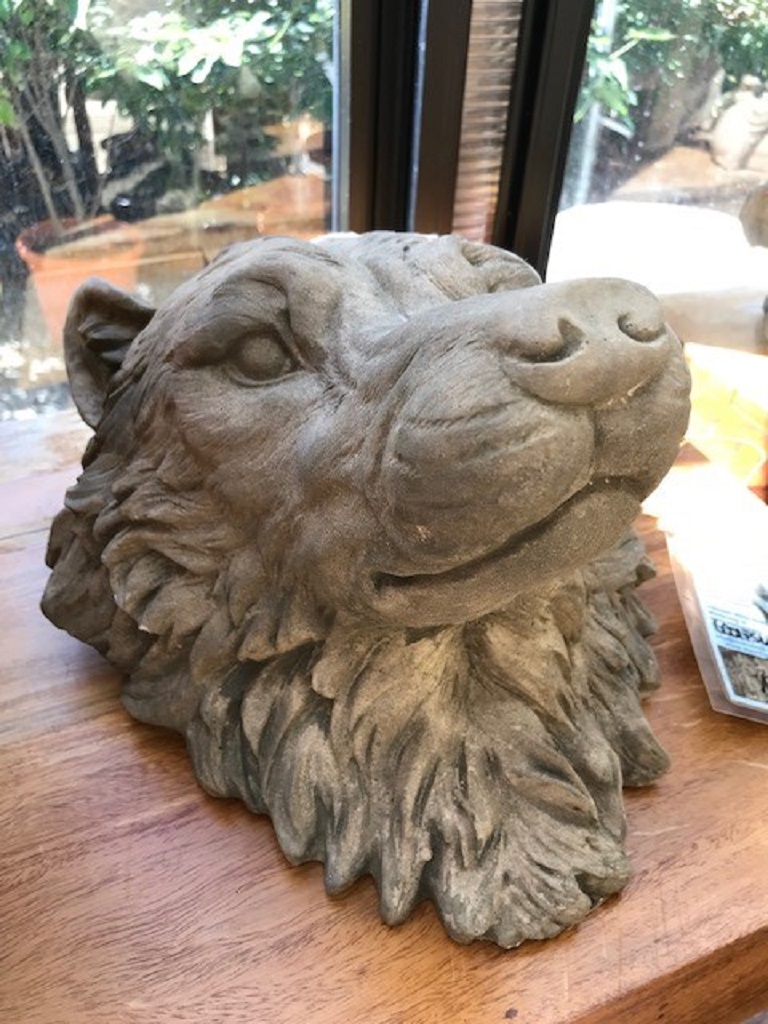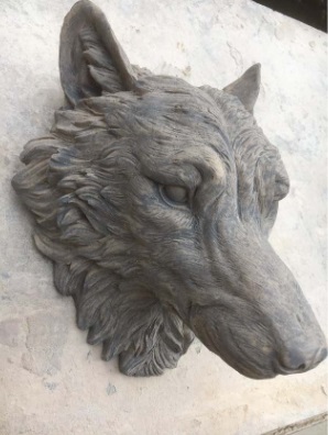 Er wurde in Deutschland im Steingussverfahren hergestellt. Dies ist eine bildhauerische Gusstechnik und ein sehr aufwändiges und altes Verfahren. Dabei wird Lava- oder Quarzsand und Bindemittel mit Wasser vermischt und in eine Hohlform gefüllt. Durch Zusatz der farbigen Pikmente entsteht der gewünschte Farbton. So entsteht eine plastische Arbeit aus künstlichem Stein. Eine feine Ausarbeitung per Hand erfolgt nach Trocknung der Plastik.