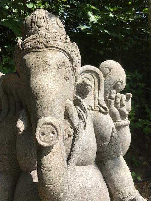 Ganesha ist eine der beliebtesten Hindugottheiten. Er steht für Lebenslust und Fülle, außerdem kann er einem Steine in den Weg legen, wie auch den Weg davon befreien. So wird er oft vor schwierigen Unternehmungen um Hilfe angerufen.