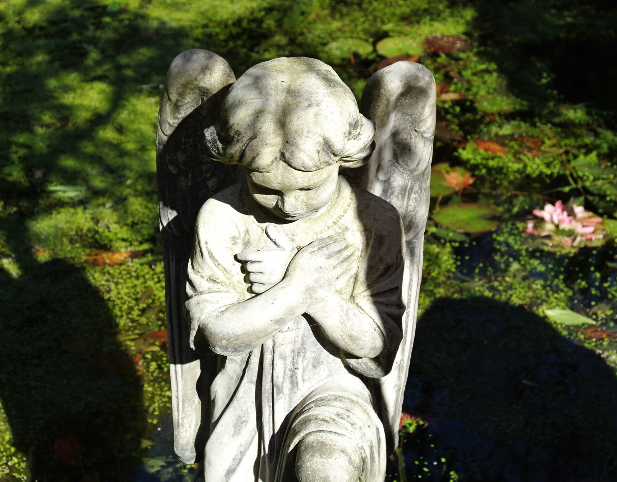 Dieses wunderschöne kniende Engelmädchen ist ein Hingucker in Ihrem Garten.