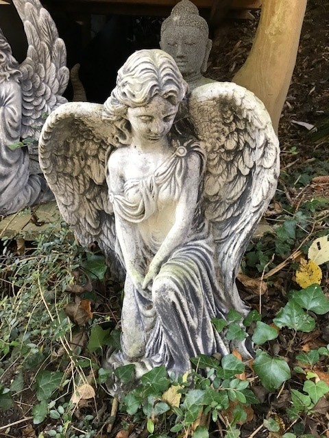 Durch seine Symmetrie und das fein gearbeitete Gewand geht von diesem Engelskind eine besondere Heiligkeit aus. Ihr wallendes Haar, die federreichen Flügel und die Haltung erscheinen wie ein kunstvolles Gemälde. Ob im Innen- oder Außenbereich, dieser Engel erschafft eine besondere Atmosphäre der Erhabenheit. Je nach Platzierung kann man ihre Wirkung individuell verändern. So wirkt sie halb versteckt zwischen dichten Pflanzen wie eine vergessene, geheimnisvolle Statue umgeben von einem magischen Zauber.
