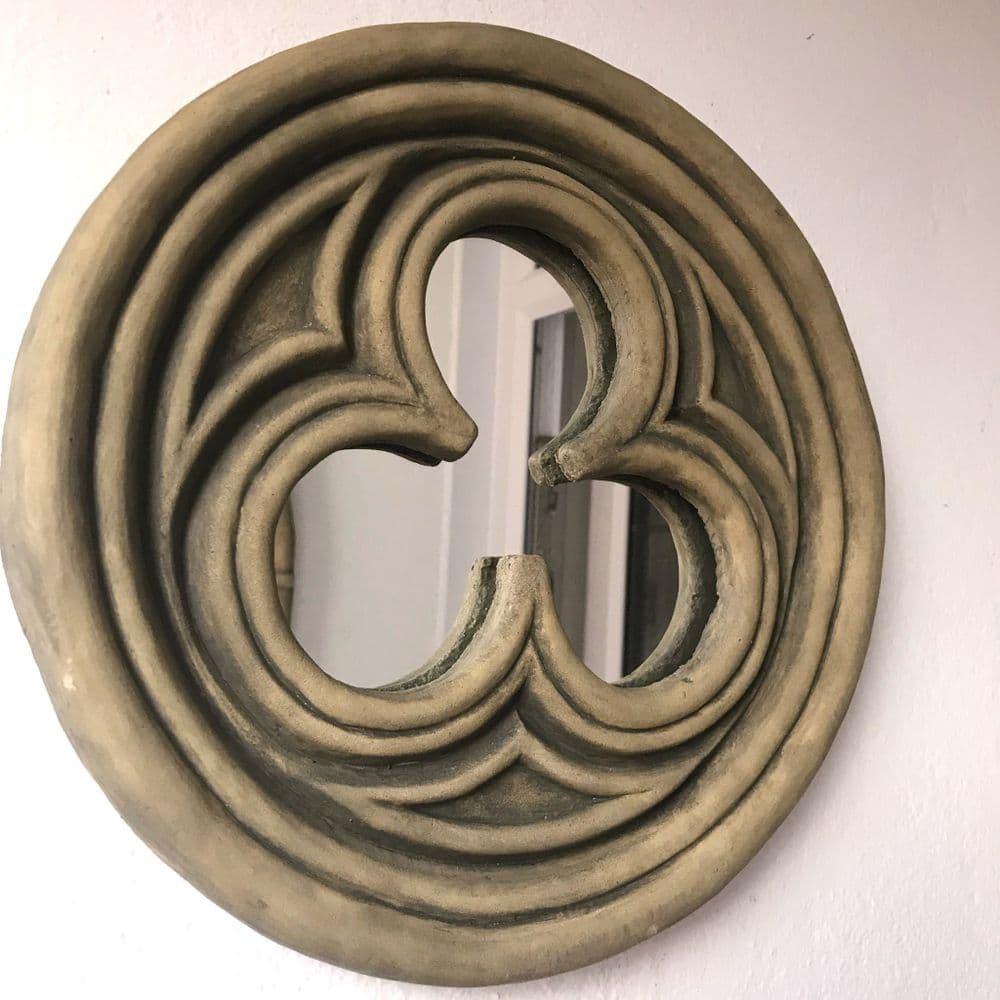 Der Stein-Spiegel im gotischen Stil ist aus hochwertigem Formstein und verleiht den Eindruck ein Original aus einer alten englischen Kirchenruine zu sein. Mit diesem Schmuckstück bringen Sie den Flair einer gotischen Kathedrale zu sich nach Hause, in den Wintergarten oder in den Garten.