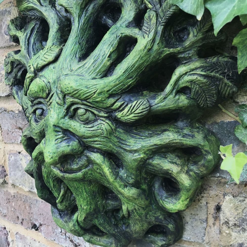 Root ist eine Variante vom Grünen Mann, der im deutschsprachigem Raum auch Blattmaske genannt wird. Der grüne Mann ist ein mittelalterliches Motiv und taucht immer wieder in verschiedenen profanen und sakralen Bauten auf. Auch wenn der grüne Mann eher England zugeordnet wird, so findet man ihn auch an zahlreichen Plätzen in Europa. Es wird vermutet, dass der Ursprung aus Vorchristlichen Zeiten stammt und den Kopf als Zentrum aller Kraft symbolisiert. Original-Design von Noughton, handgegossen in den Werkstätten in Sussex, England.