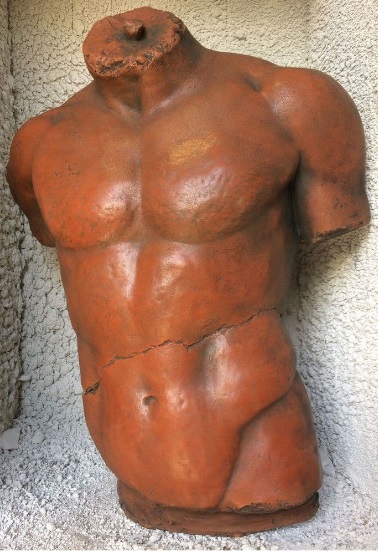 Darstellung eines schönen Torsos in Terrakottafarbe.