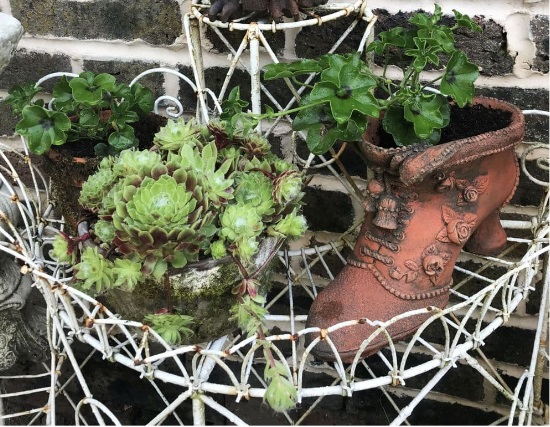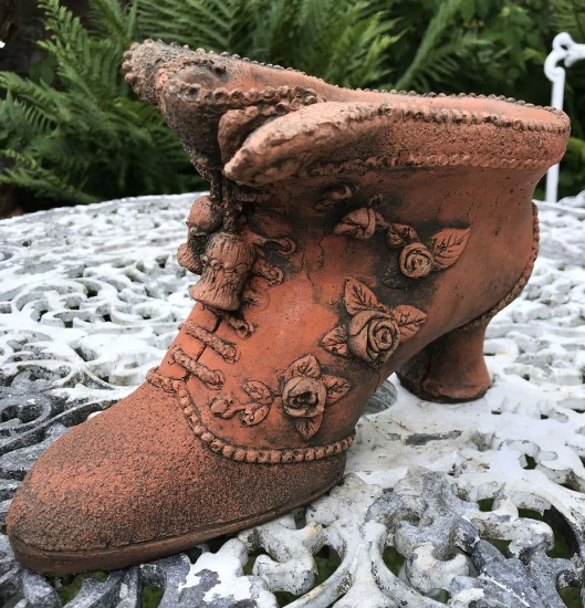 Diese Steinfigur sieht aus wie ein Damen-Schuh. Von seinem Besitzer vergessen versteinerte er wohl mit der Zeit. Nun siedeln sich Pflanzen in ihm an, denn die Natur hat ihn zurückerobert. Als wunderschöne Pflanzschale setzt ein einen tollen Akzent für Eingangsbereiche oder Terrassen und überzeugt durch seinen altmodischen Charme!