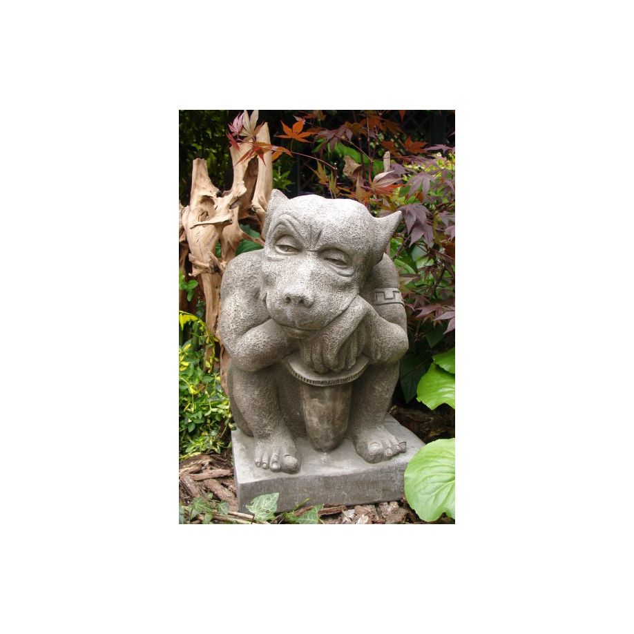 Dieser Gargoyle auf Schwert sieht wunderbar an einer Einfahrt bzw. Mauer aus. Er erinnert den Betrachter an vergangene Zeiten. Ein Gargoyle bezeichnet eigentlich einen Wasserspeier, (Französisch: Gargouille) wie er oft an alten Brunnen, Kirchen oder alten Häusern zu finden ist. Gargoyles sind Fabelwesen, die bei Tagesanbruch zu Stein erstarren und bei Nacht wieder zum Leben erwachen. Dieser Gargoyle wartet darauf, dass er im Schutz der Dunkelheit in Ihrem Garten wieder sein Unwesen treiben kann. Der Gargoyle eigenet sich ideal um Ihren Garten in eine Märchenwelt zu verwandeln.