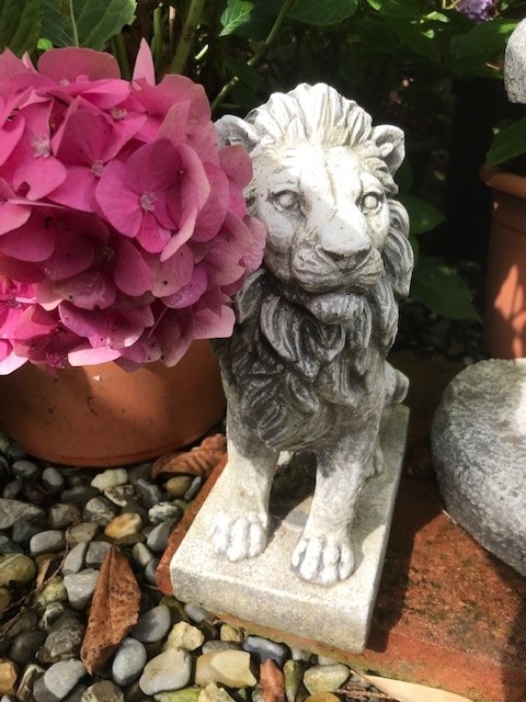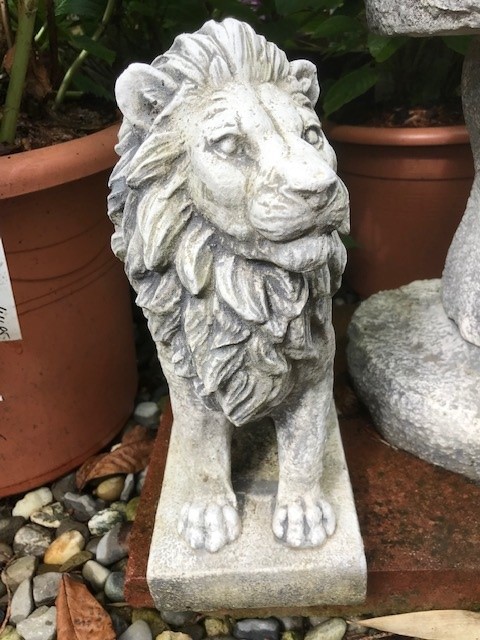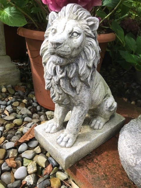 Dieser majestätische Löwe kann als Empfangsfigur für Eingangsbereiche verwendet werden. Aber auch als Steinfigur im Garten kommt er wunderbar zur Geltung. Dabei bietet seine weiße Gestalt einen tollen Kontrast zum Grün der umliegenden Pflanzenwelt. Königlich wellt sich seiner Mähne über sein Haupt und sein Blick ist tief und ernst. Er ist ein eindrucksvoller Bewacher und wirkt wie ein Krafttier, voll Anmut und Stärke.