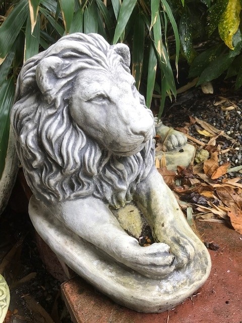Dieser majestätische Löwe kann als Willkommensfigur für Eingangsbereiche verwendet werden. Aber auch als Steinfigur im Garten kommt er wunderbar zur Geltung. Dabei bietet seine weiße Gestalt einen tollen Kontrast zum Grün der umliegenden Pflanzenwelt. Königlich wellt sich seiner Mähne über sein Haupt und sein Blick ist tief und ernst. Er ist ein eindrucksvoller Bewacher und wirkt wie ein Krafttier, voll Anmut und Stärke.