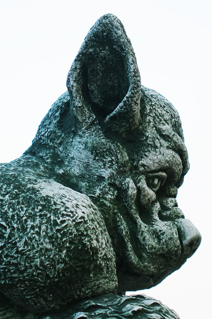 Die Figur wurde im Steingussverfahren hergestellt. Dies ist eine bildhauerische Gusstechnik und ein sehr aufwändiges und altes Verfahren. Dabei wird Lava- oder Quarzsand und Bindemittel mit Wasser vermischt und in eine Hohlform gefüllt. Durch Zusatz der farbigen Pikmente entsteht der gewünschte Farbton. So entsteht eine plastische Arbeit aus künstlichem Stein. Eine feine Ausarbeitung per Hand erfolgt nach Trocknung der Plastik.