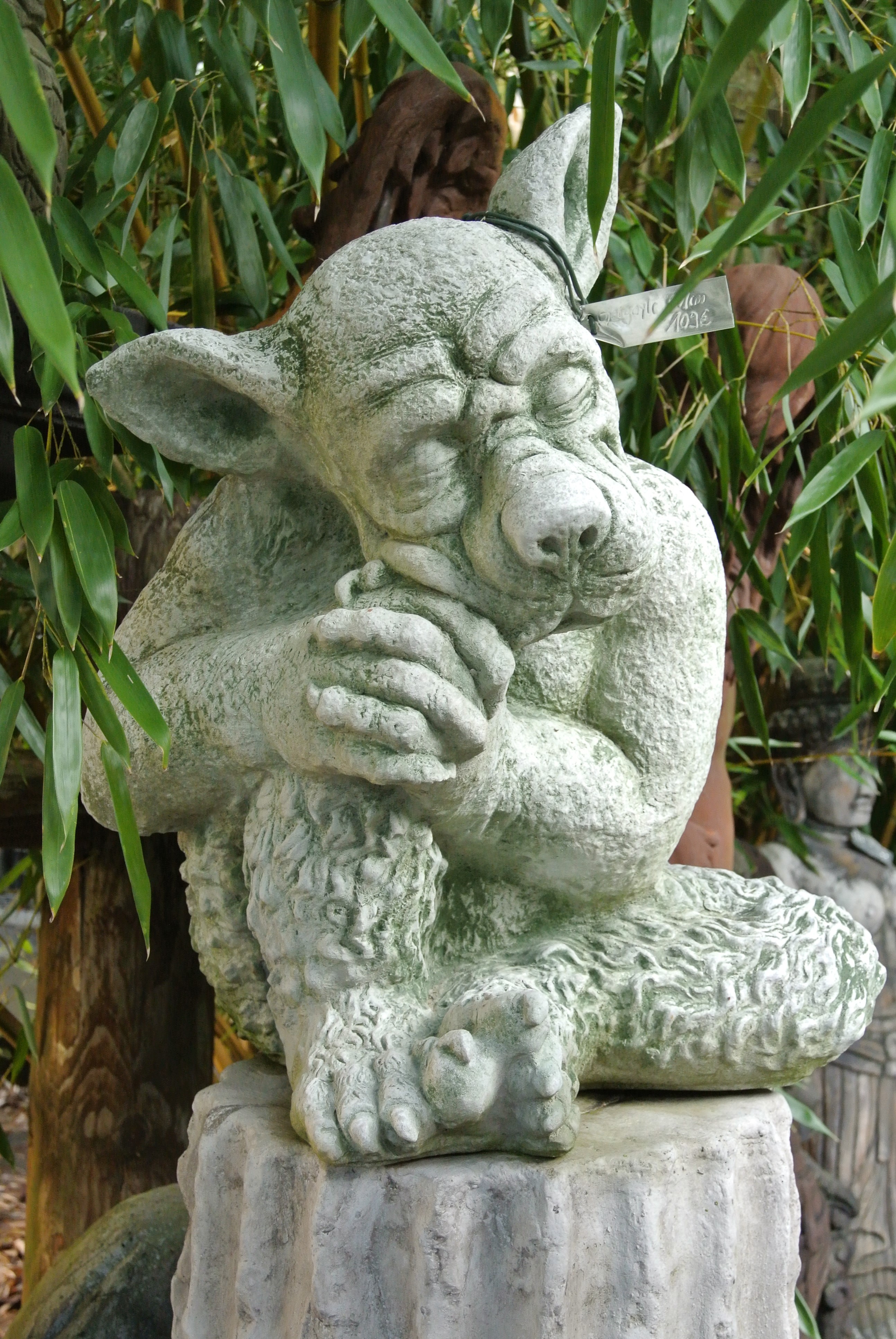 Gargoyles sind Fabelwesen, die bei Tagesanbruch zu Stein erstarren und bei Nacht wieder zum Leben erwachen. Dieser Gargoyle wartet darauf, dass er im Schutz der Dunkelheit in Ihrem Garten wieder sein Unwesen treiben kann. Ein Gargoyle bezeichnet eigentlich einen Wasserspeier, (Französisch: Gargouille) wie er oft an alten Brunnen, Kirchen oder alten Häusern zu finden ist.
