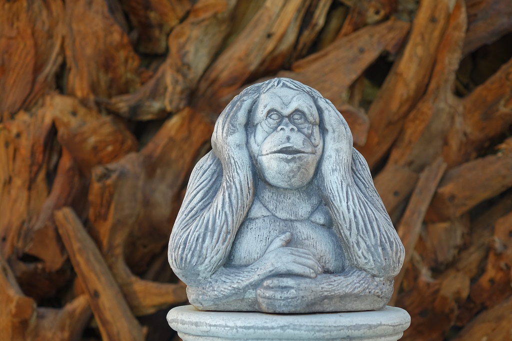 Affen Steinfiguren - Nicht gehört, nicht gesprochen, nicht gesehen Affe-Nicht gesprochen 15cm