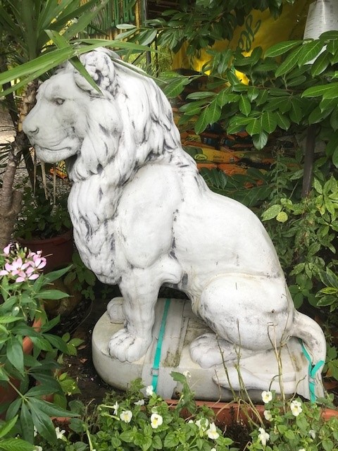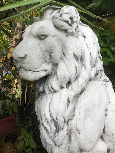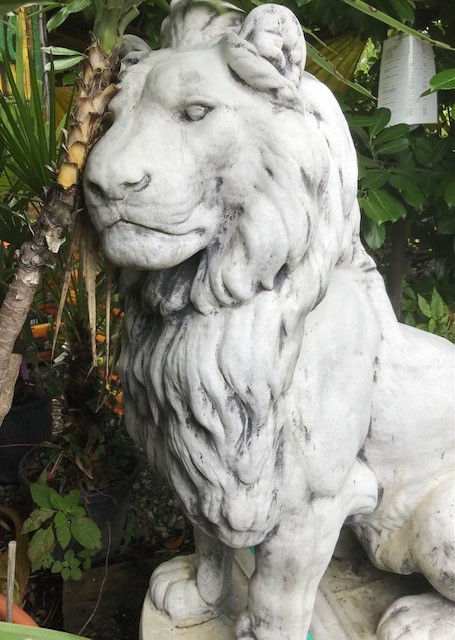 Dieser majestätische Löwe kann als Empfangsfigur für Eingangsbereiche verwendet werden. Aber auch als Steinfigur im Garten kommt er wunderbar zur Geltung. Dabei bietet seine weiße Gestalt einen tollen Kontrast zum Grün der umliegenden Pflanzenwelt. Königlich wellt sich seiner Mähne über sein Haupt und sein Blick ist tief und ernst. Er ist ein eindrucksvoller Bewacher und wirkt wie ein Krafttier, voll Anmut und Stärke.